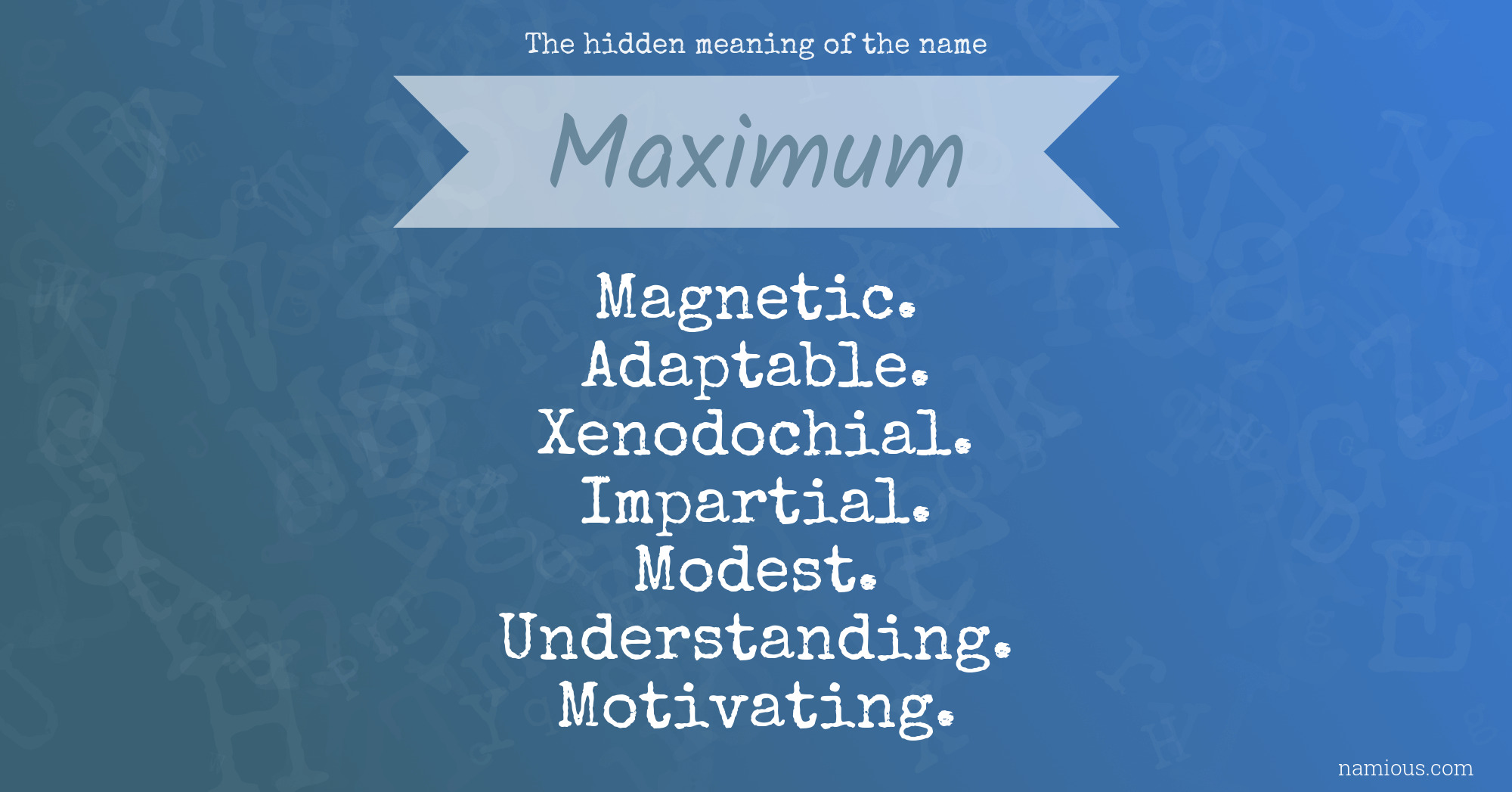"Maximum is a magnetic, adaptable, xenodochial, impartial, modest, understanding and motivating person."