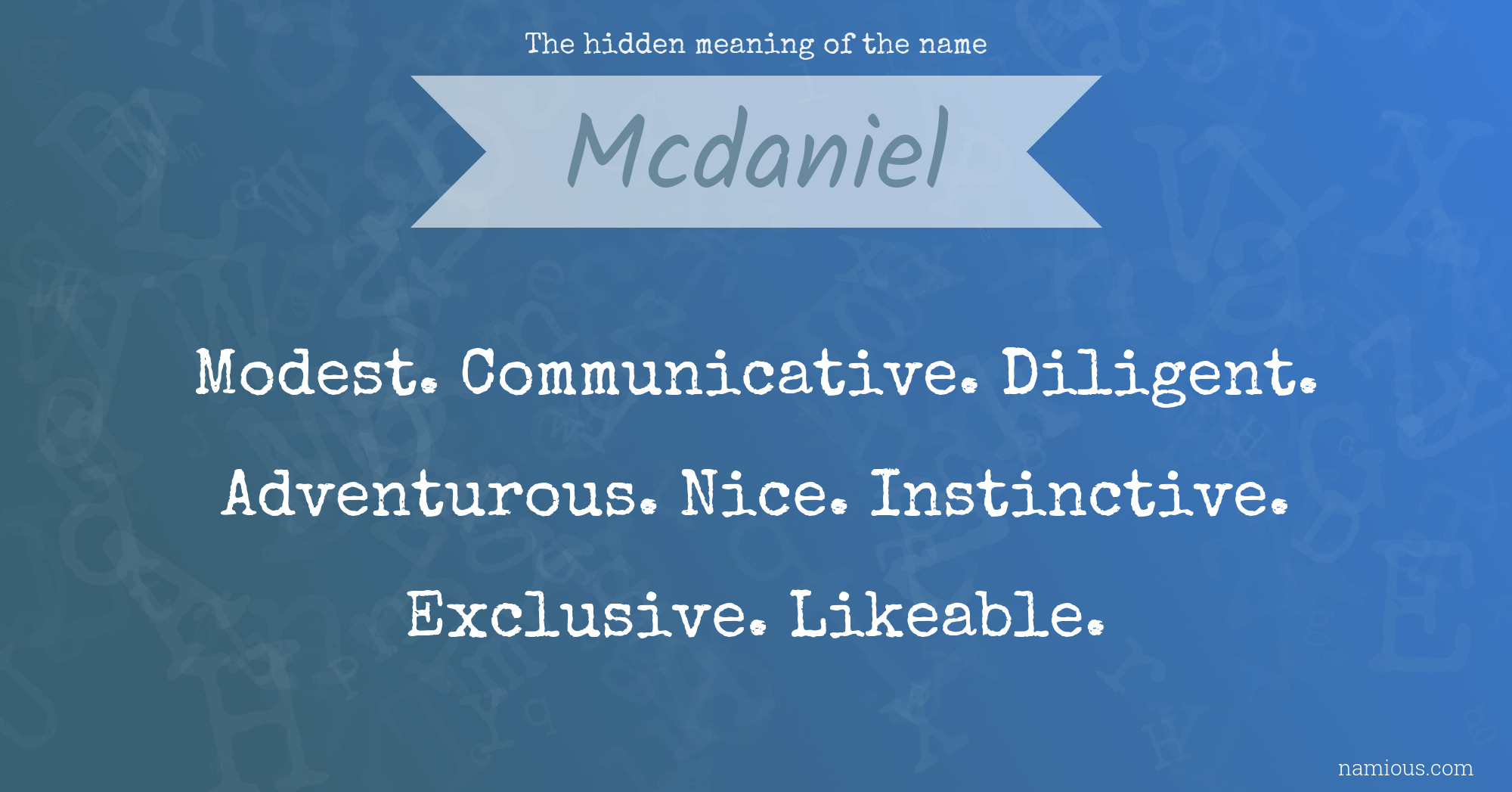 "Mcdaniel is a modest, communicative, diligent, adventurous, nice, instinctive, exclusive and likeable person."