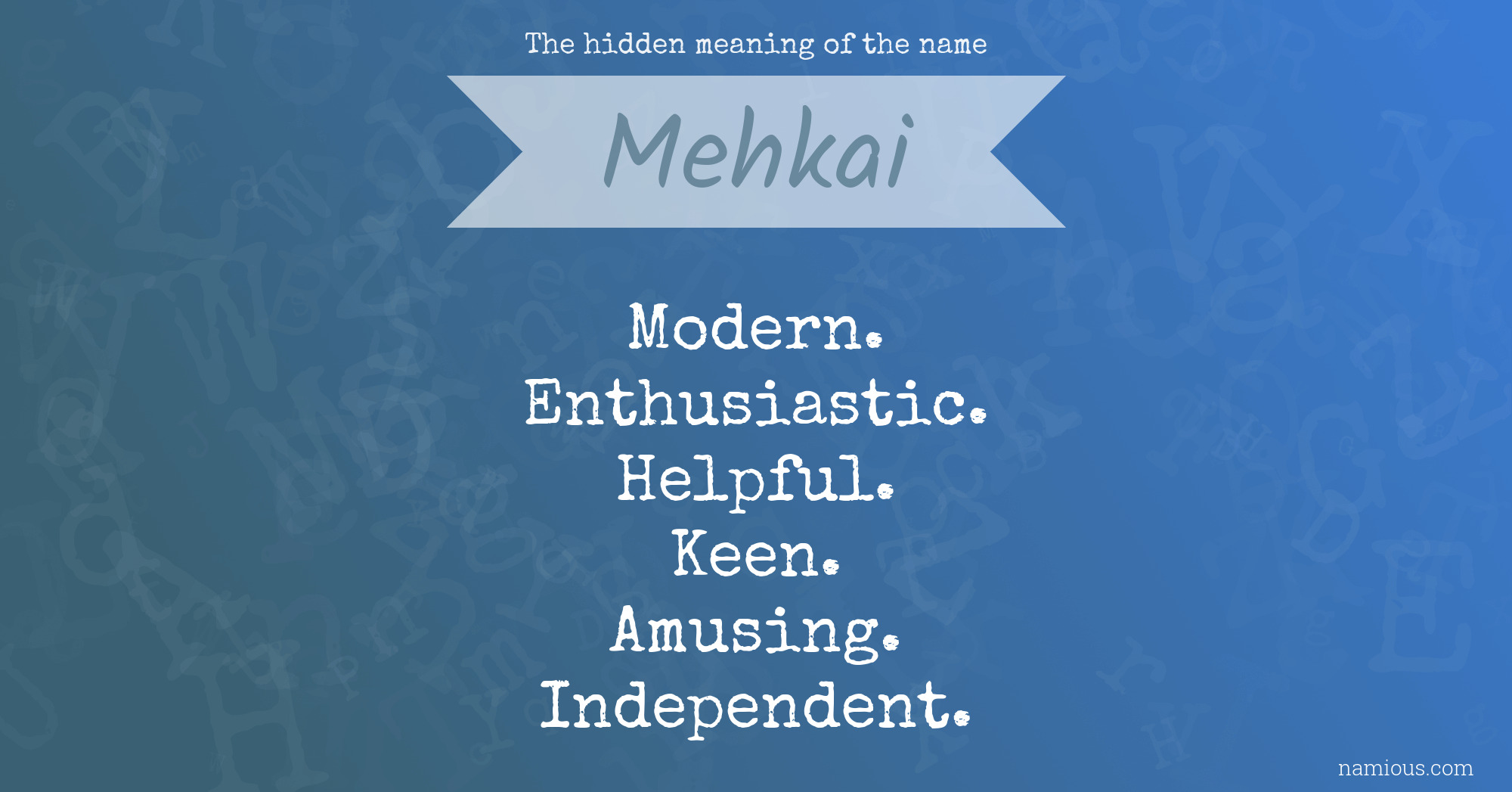 "Mehkai is a modern, enthusiastic, helpful, keen, amusing and independent person."