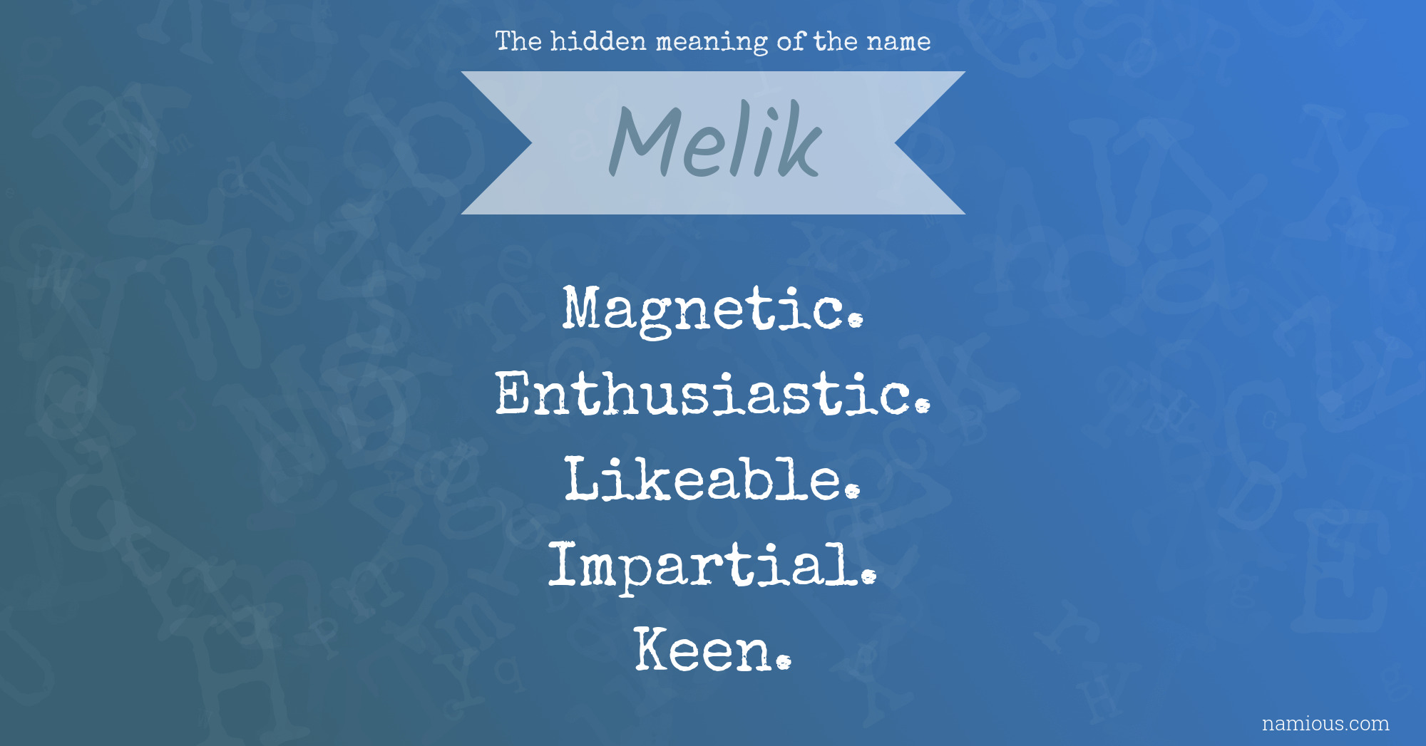 "Melik is a magnetic, enthusiastic, likeable, impartial and keen person."