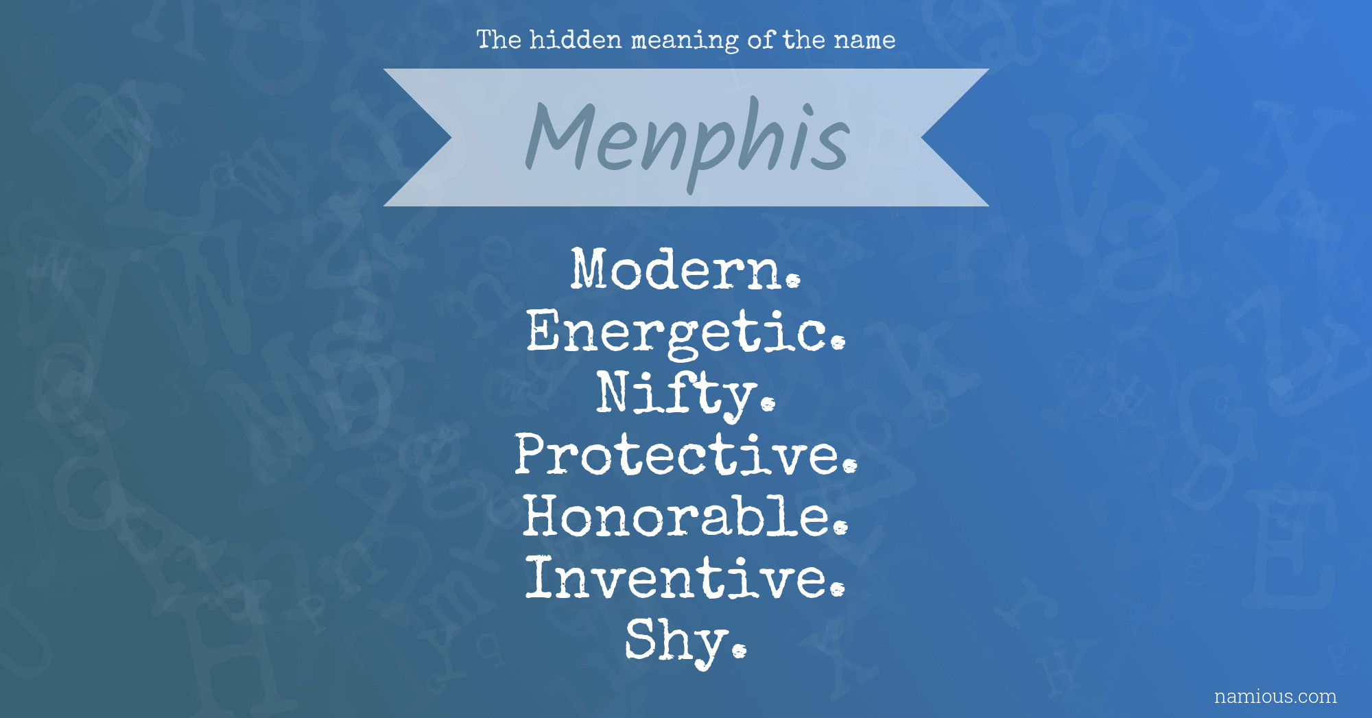 "Menphis is a modern, energetic, nifty, protective, honorable, inventive and shy person."