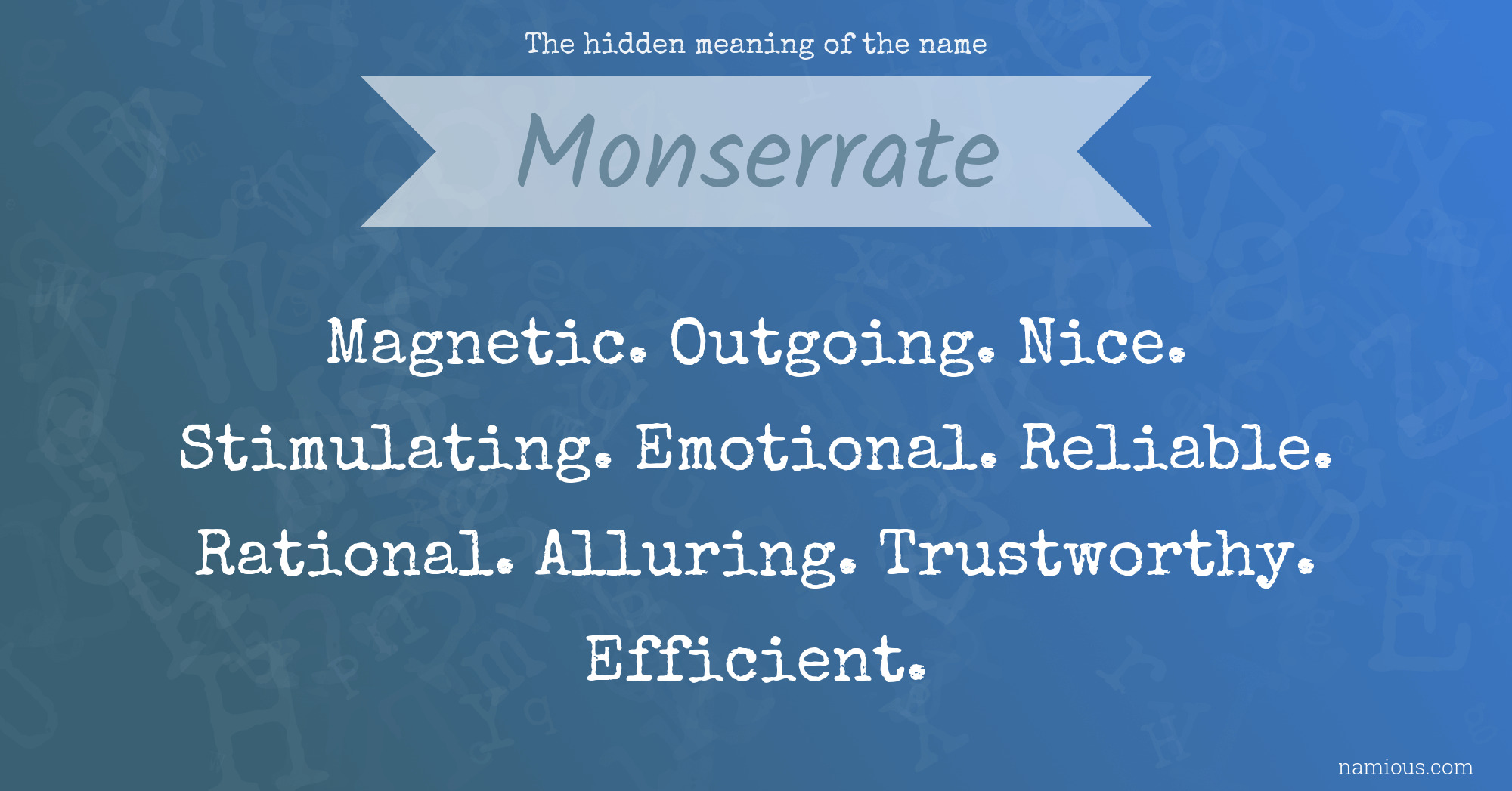 "Monserrate is a magnetic, outgoing, nice, stimulating, emotional, reliable, rational, alluring, trustworthy and efficient person."