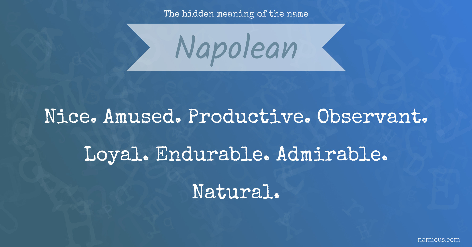 "Napolean is a nice, amused, productive, observant, loyal, endurable, admirable and natural person."