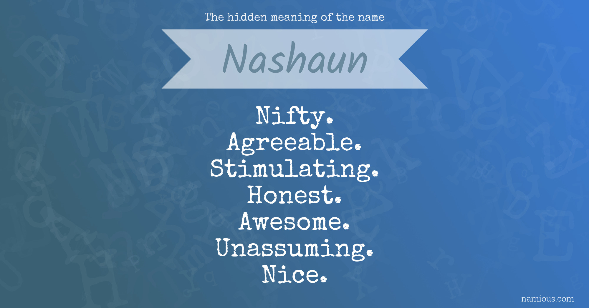 "Nashaun is a nifty, agreeable, stimulating, honest, awesome, unassuming and nice person."