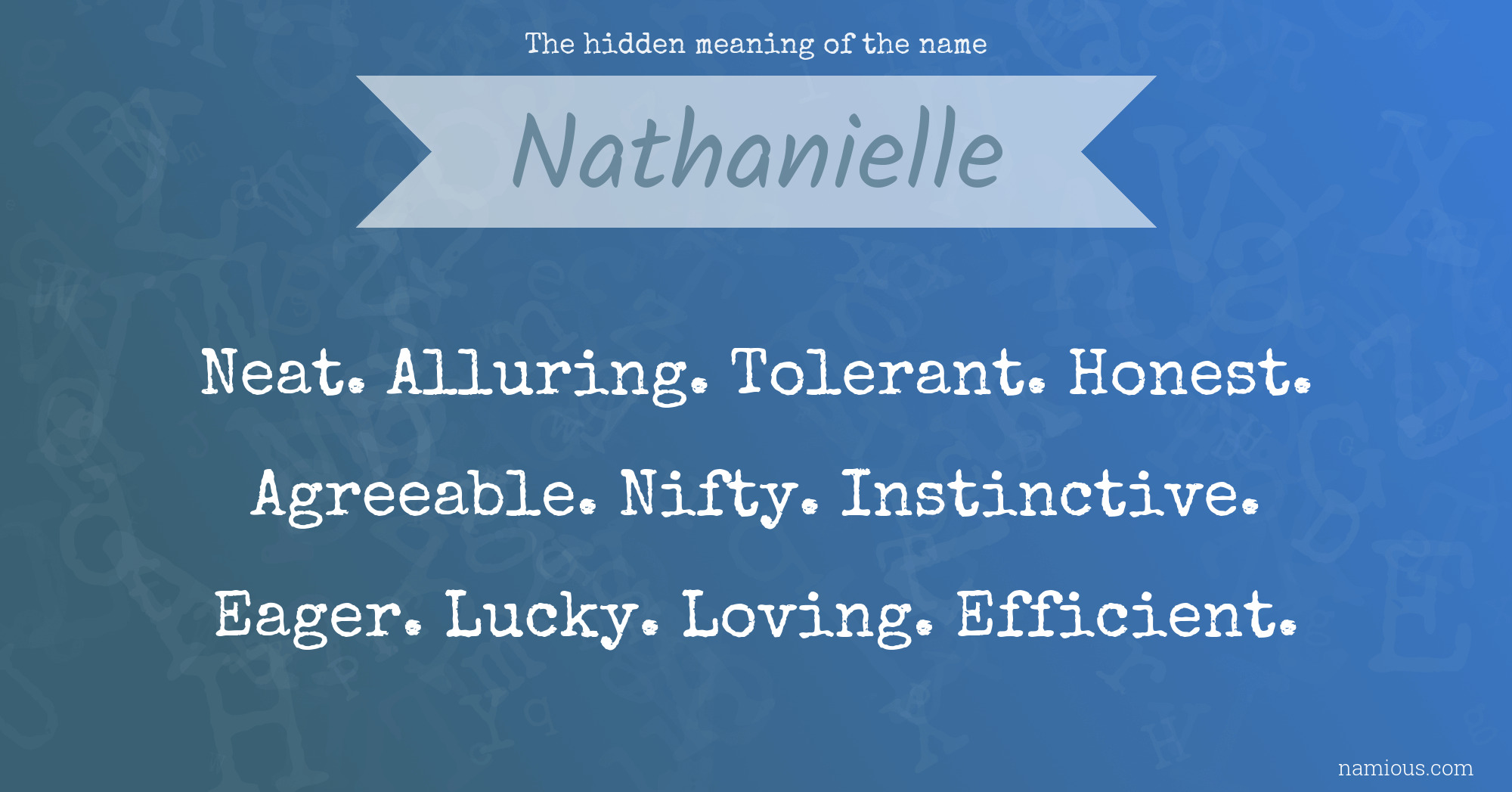 "Nathanielle is a neat, alluring, tolerant, honest, agreeable, nifty, instinctive, eager, lucky, loving and efficient person."