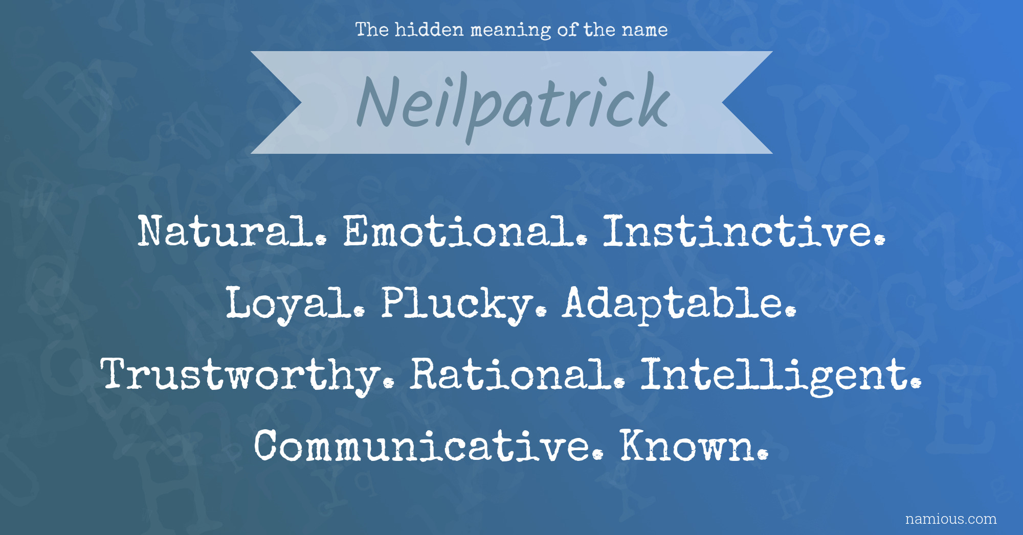 "Neilpatrick is a natural, emotional, instinctive, loyal, plucky, adaptable, trustworthy, rational, intelligent, communicative and known person."