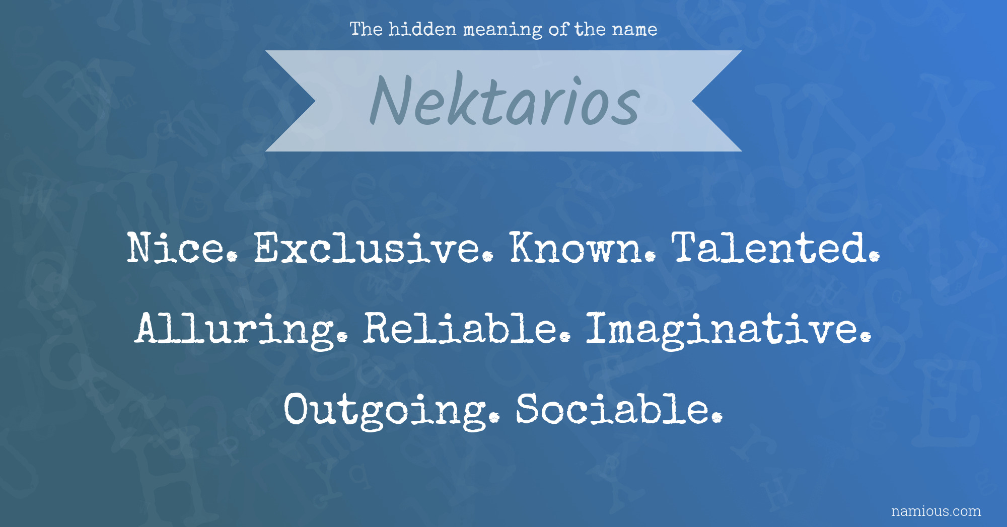 "Nektarios is a nice, exclusive, known, talented, alluring, reliable, imaginative, outgoing and sociable person."