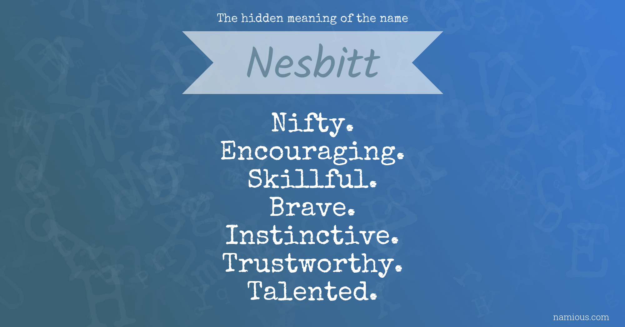 "Nesbitt is a nifty, encouraging, skillful, brave, instinctive, trustworthy and talented person."