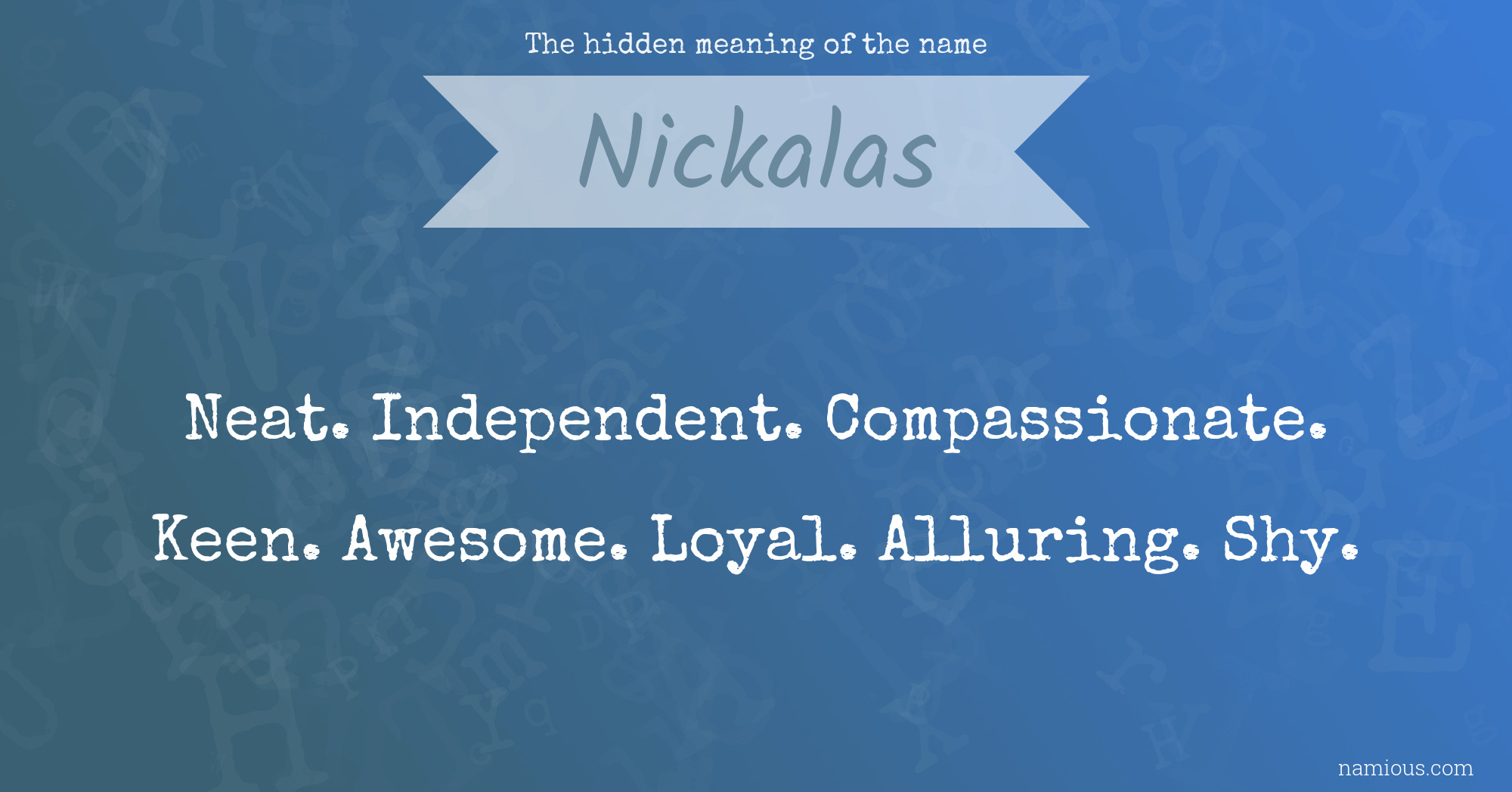 "Nickalas is a neat, independent, compassionate, keen, awesome, loyal, alluring and shy person."