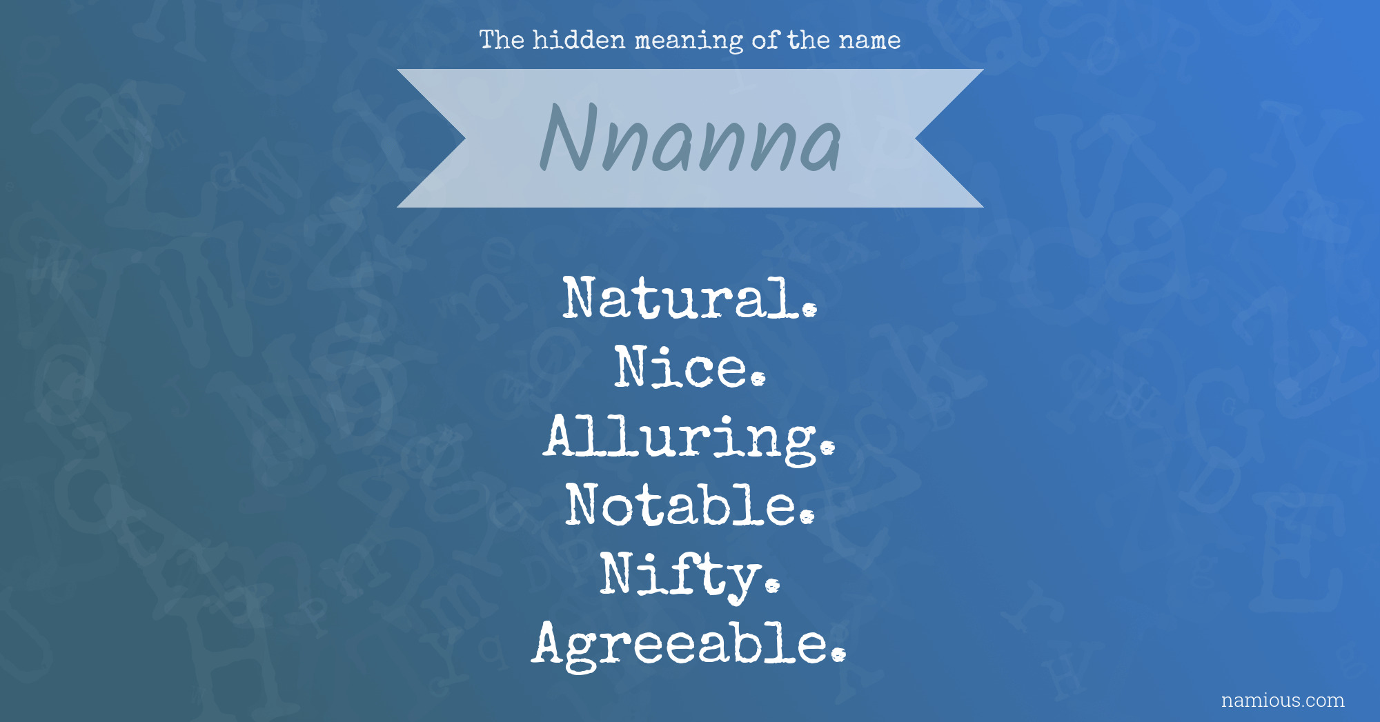 "Nnanna is a natural, nice, alluring, notable, nifty and agreeable person."