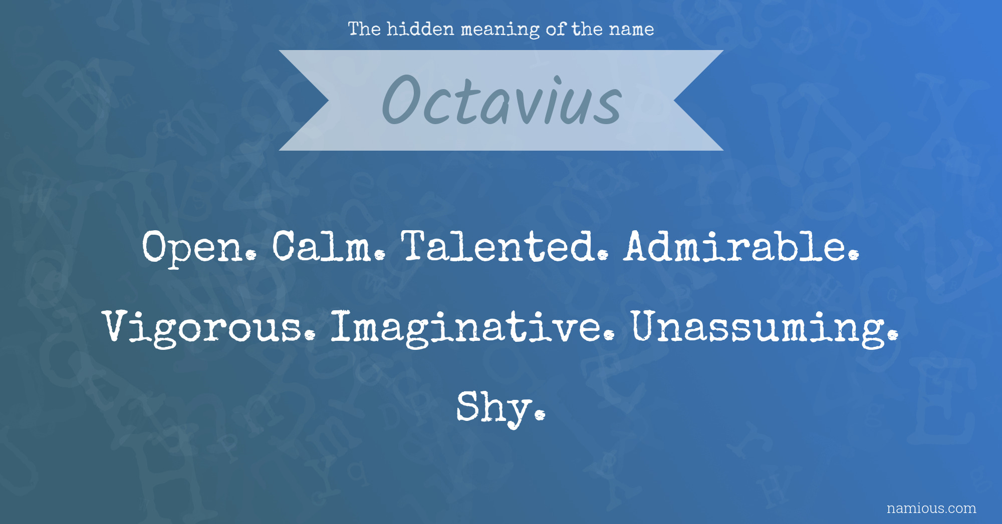 "Octavius is an open, calm, talented, admirable, vigorous, imaginative, unassuming and shy person."