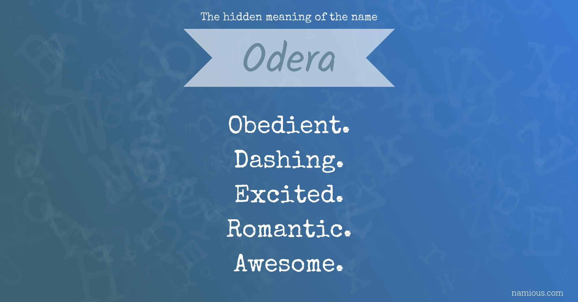 "Odera is an obedient, dashing, excited, romantic and awesome person."
