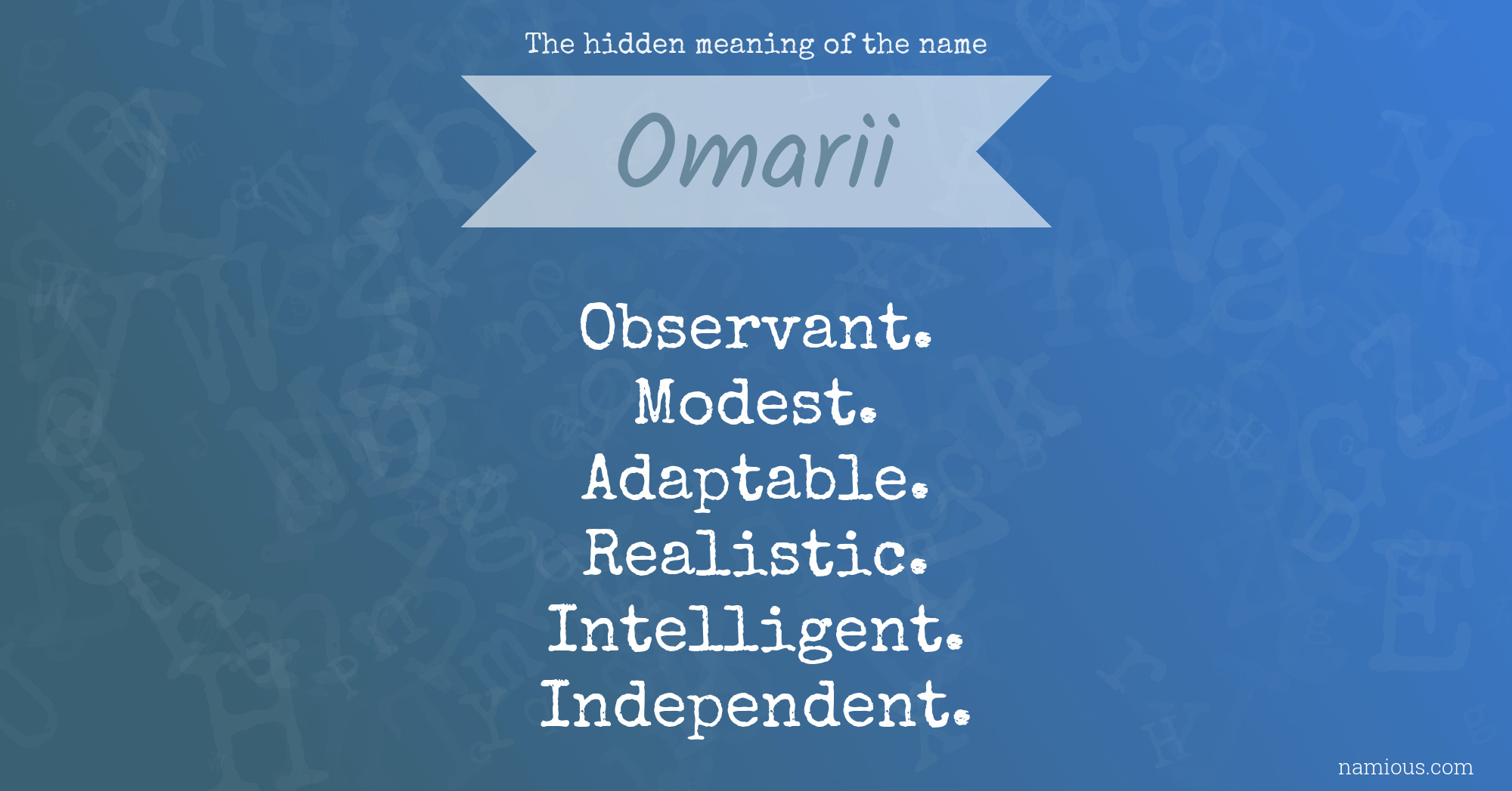 "Omarii is an observant, modest, adaptable, realistic, intelligent and independent person."