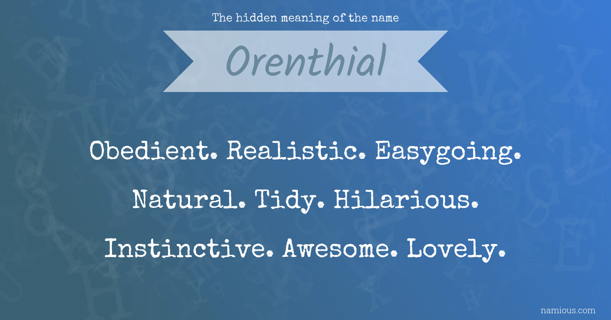 "Orenthial is an obedient, realistic, easygoing, natural, tidy, hilarious, instinctive, awesome and lovely person."