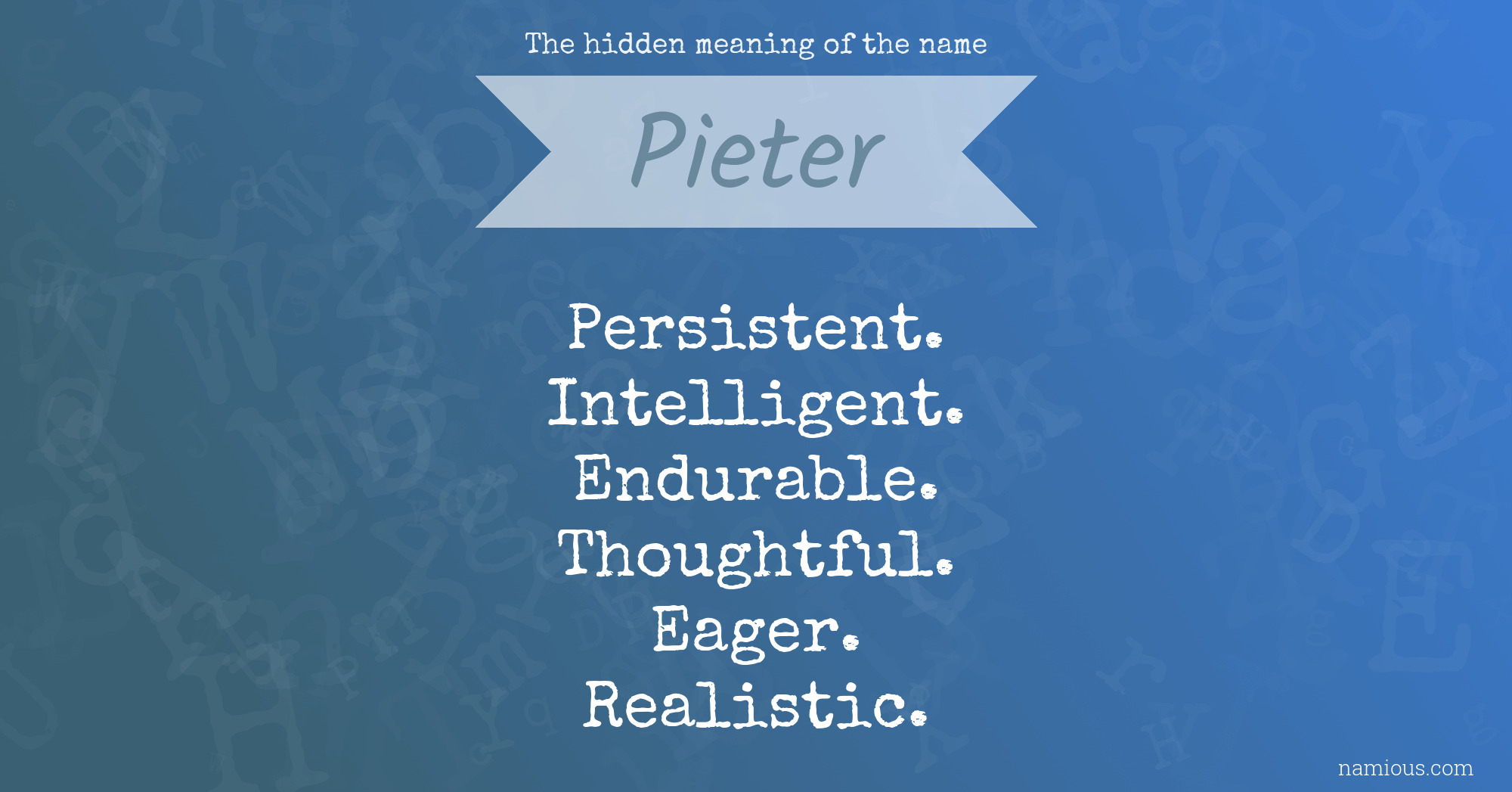 "Pieter is a persistent, intelligent, endurable, thoughtful, eager and realistic person."