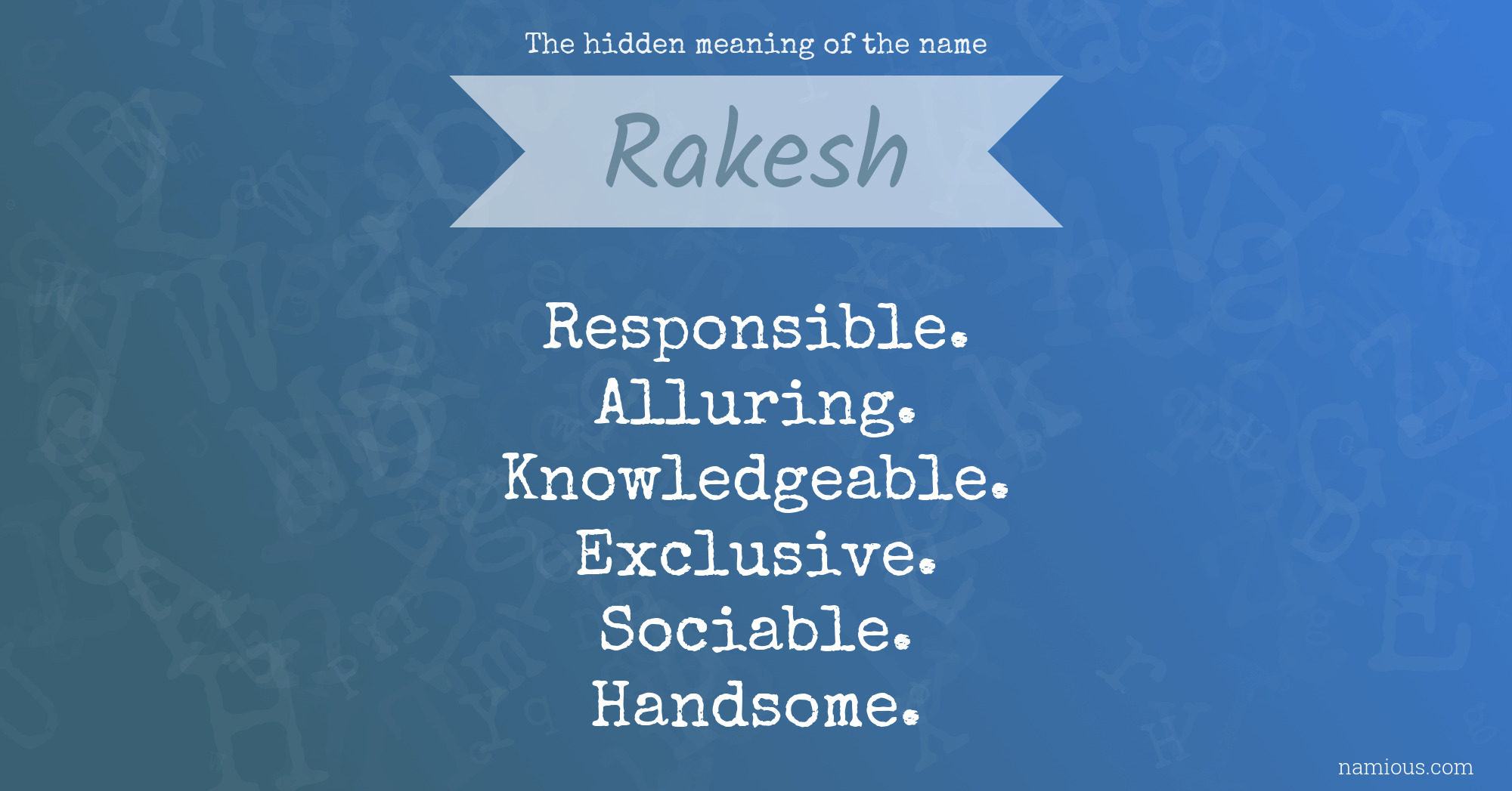 "Rakesh is a responsible, alluring, knowledgeable, exclusive, sociable and handsome person."