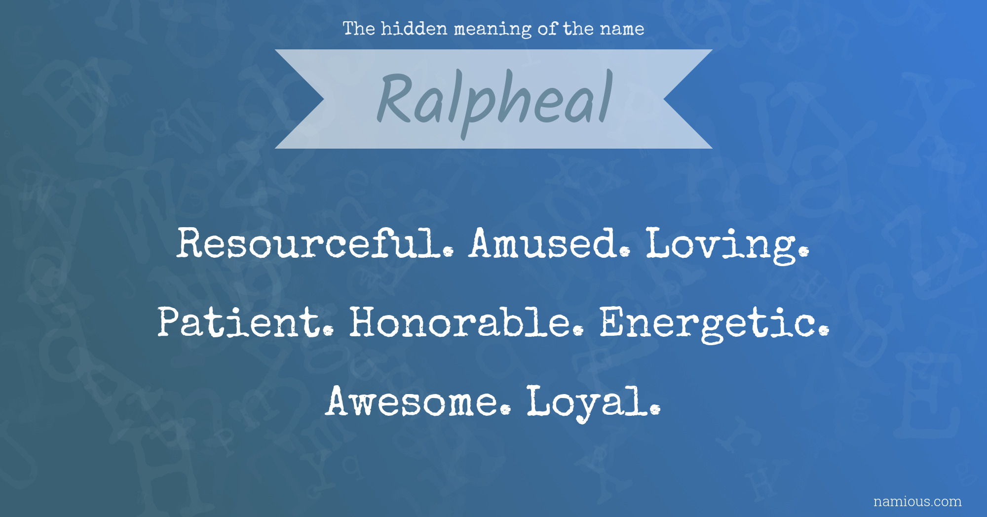 "Ralpheal is a resourceful, amused, loving, patient, honorable, energetic, awesome and loyal person."