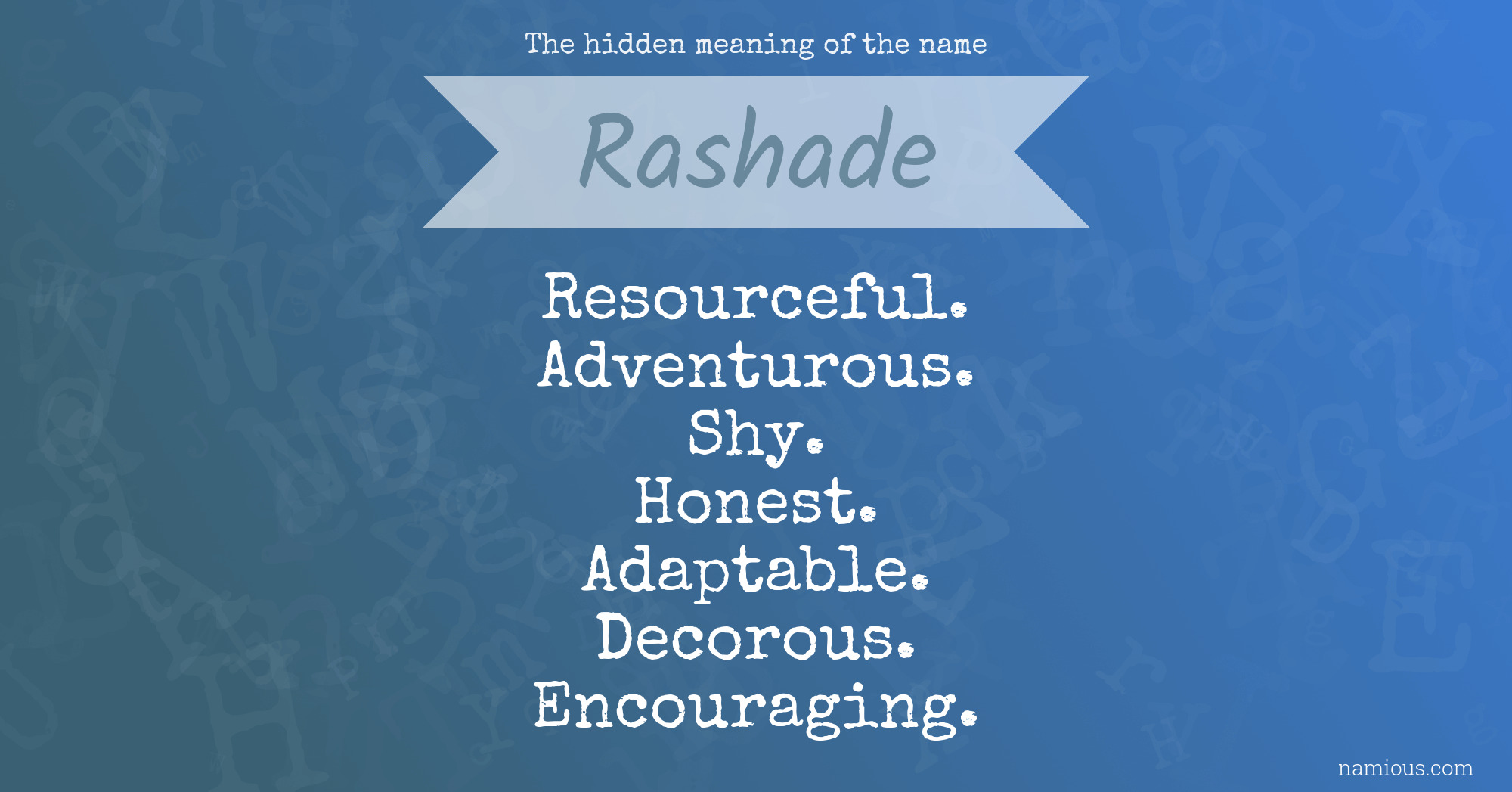 "Rashade is a resourceful, adventurous, shy, honest, adaptable, decorous and encouraging person."