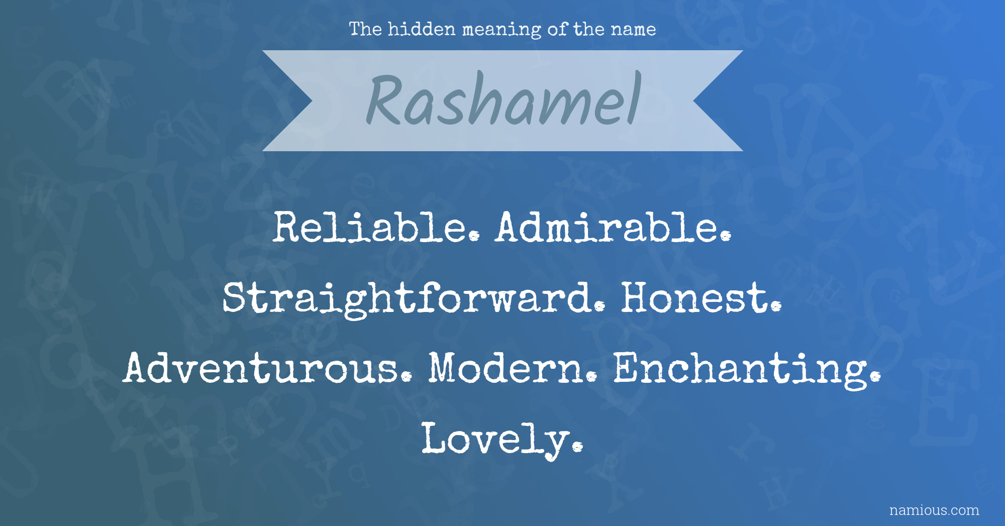 "Rashamel is a reliable, admirable, straightforward, honest, adventurous, modern, enchanting and lovely person."