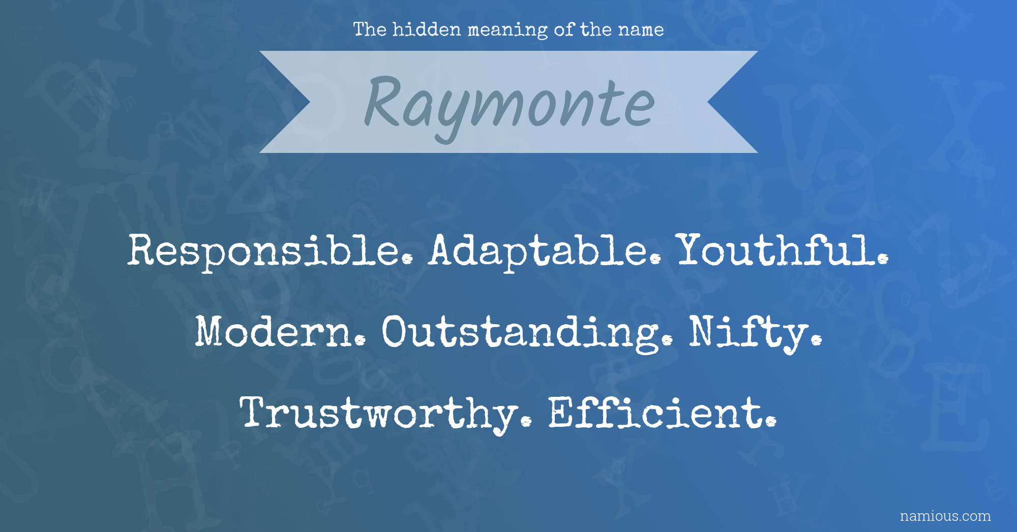 "Raymonte is a responsible, adaptable, youthful, modern, outstanding, nifty, trustworthy and efficient person."