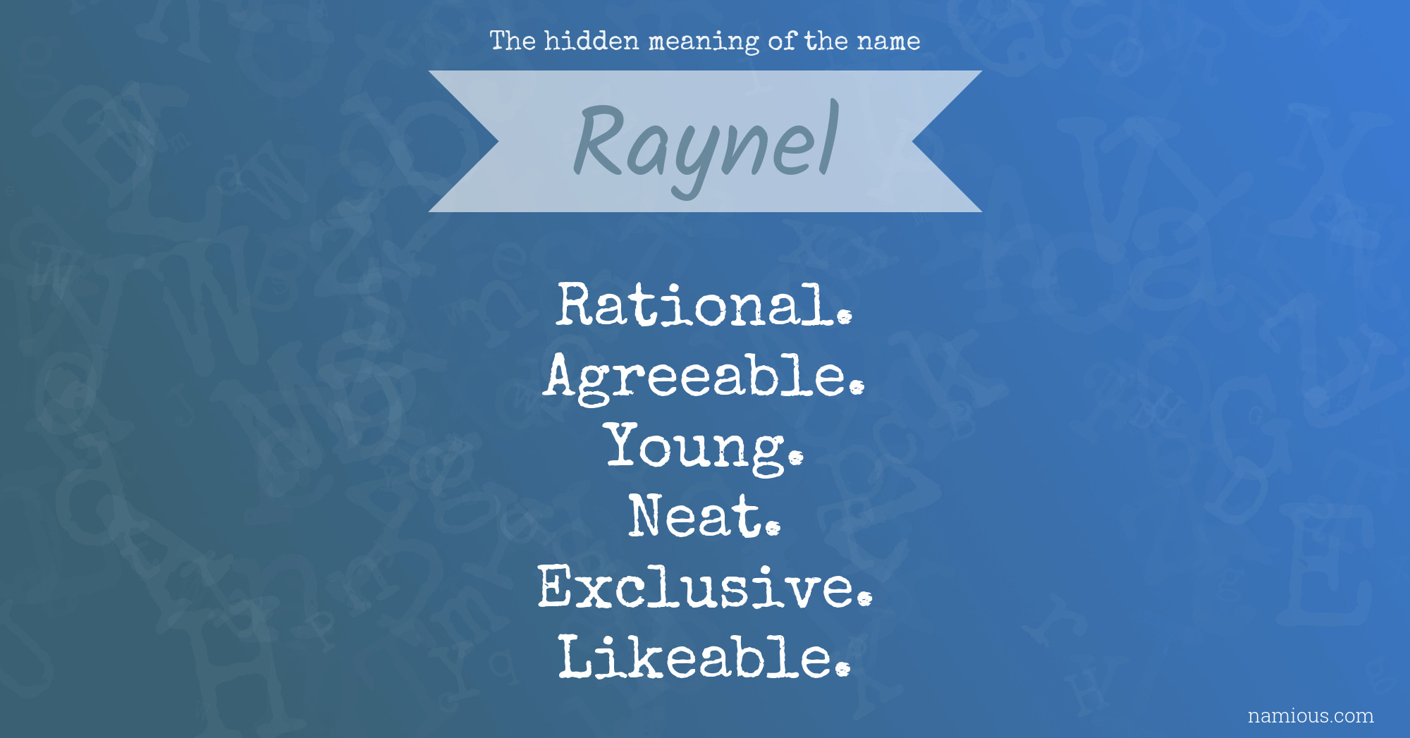 "Raynel is a rational, agreeable, young, neat, exclusive and likeable person."