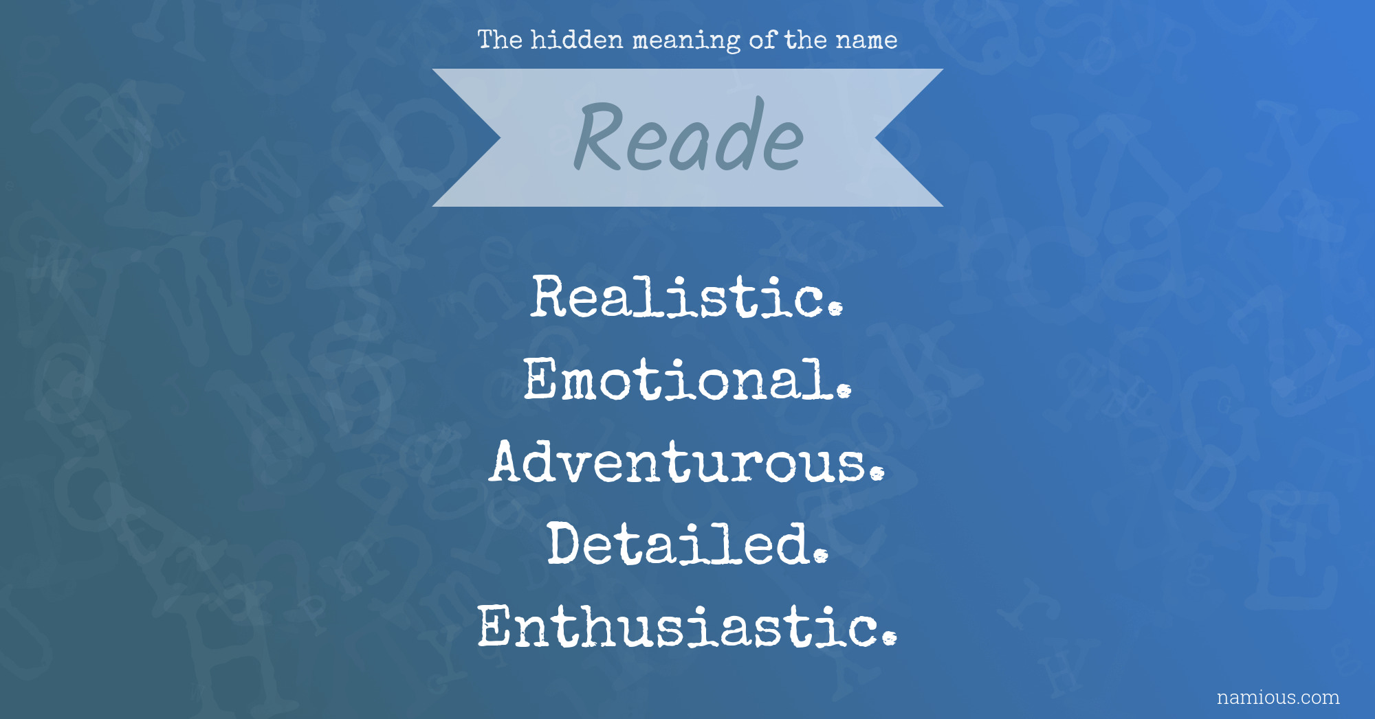"Reade is a realistic, emotional, adventurous, detailed and enthusiastic person."