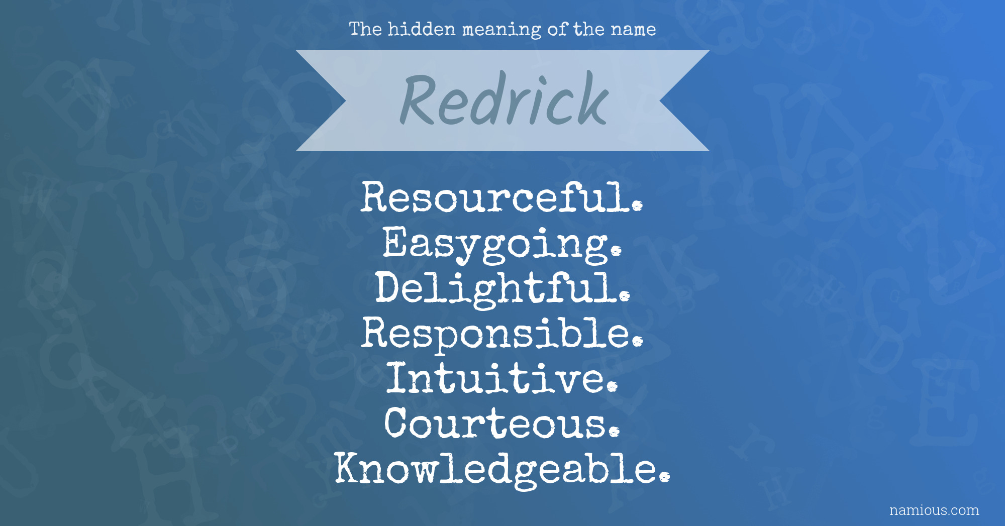 "Redrick is a resourceful, easygoing, delightful, responsible, intuitive, courteous and knowledgeable person."