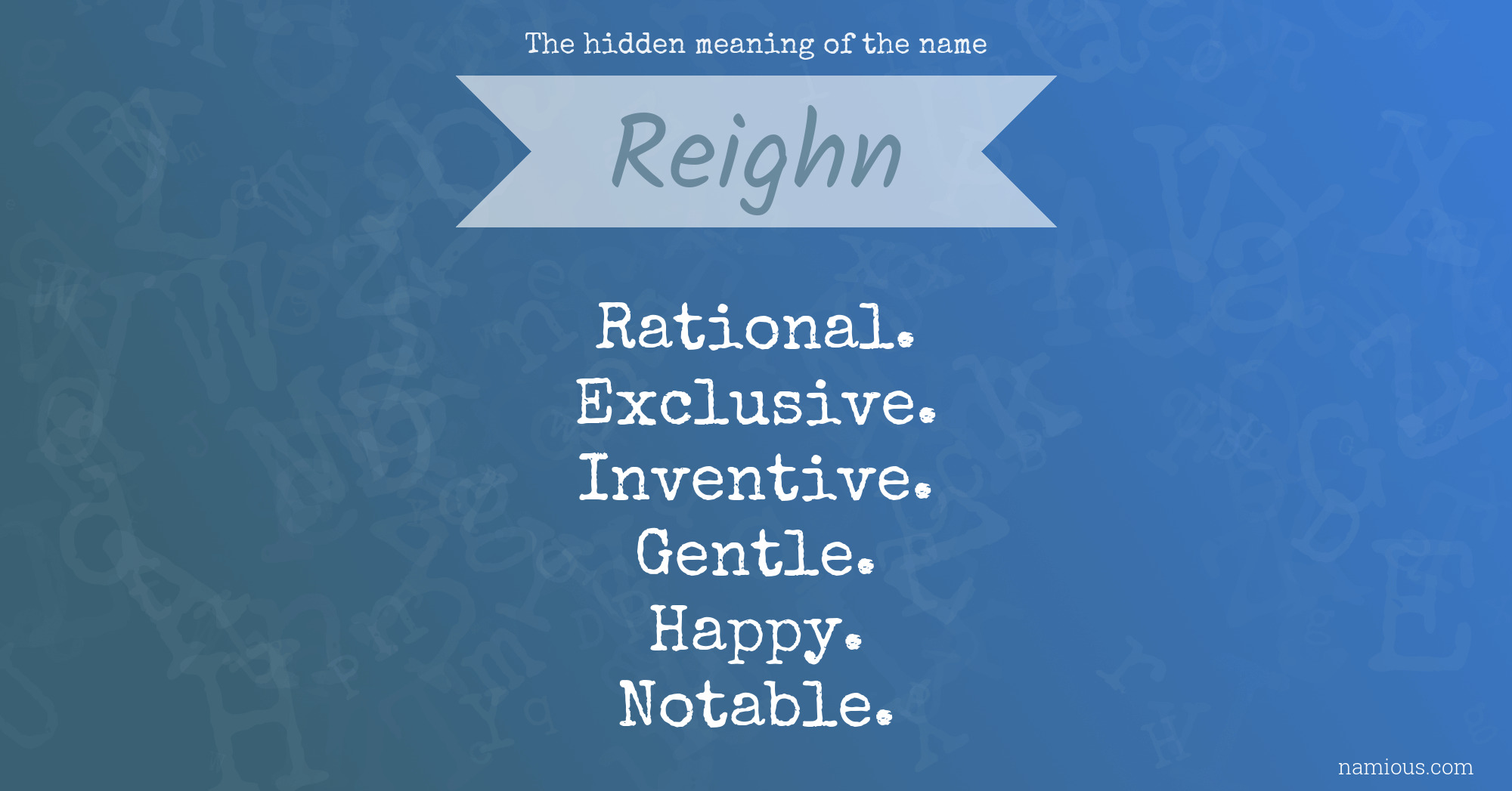 "Reighn is a rational, exclusive, inventive, gentle, happy and notable person."
