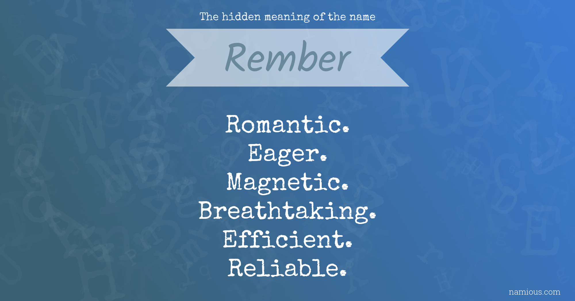 "Rember is a romantic, eager, magnetic, breathtaking, efficient and reliable person."