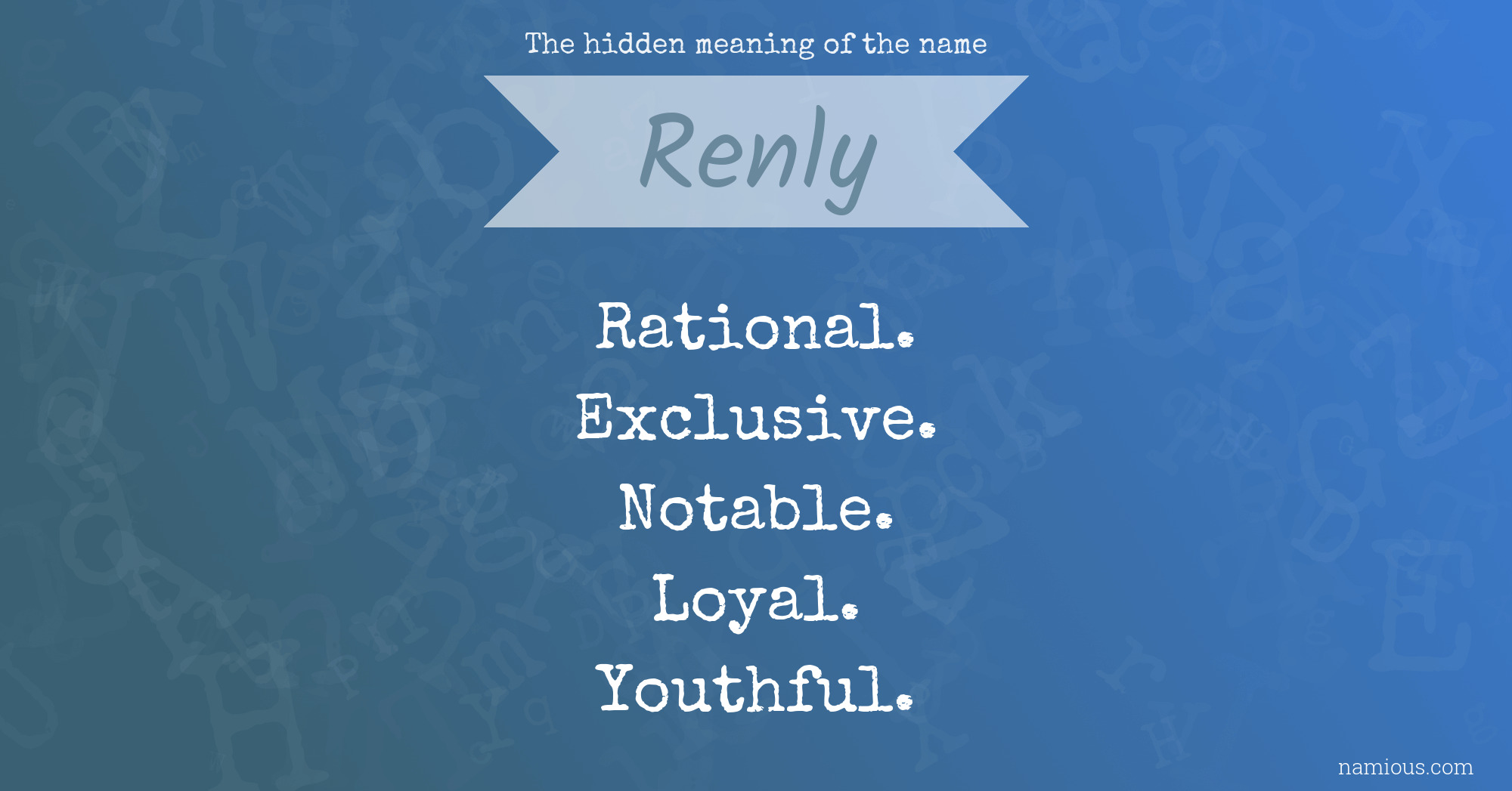 "Renly is a rational, exclusive, notable, loyal and youthful person."