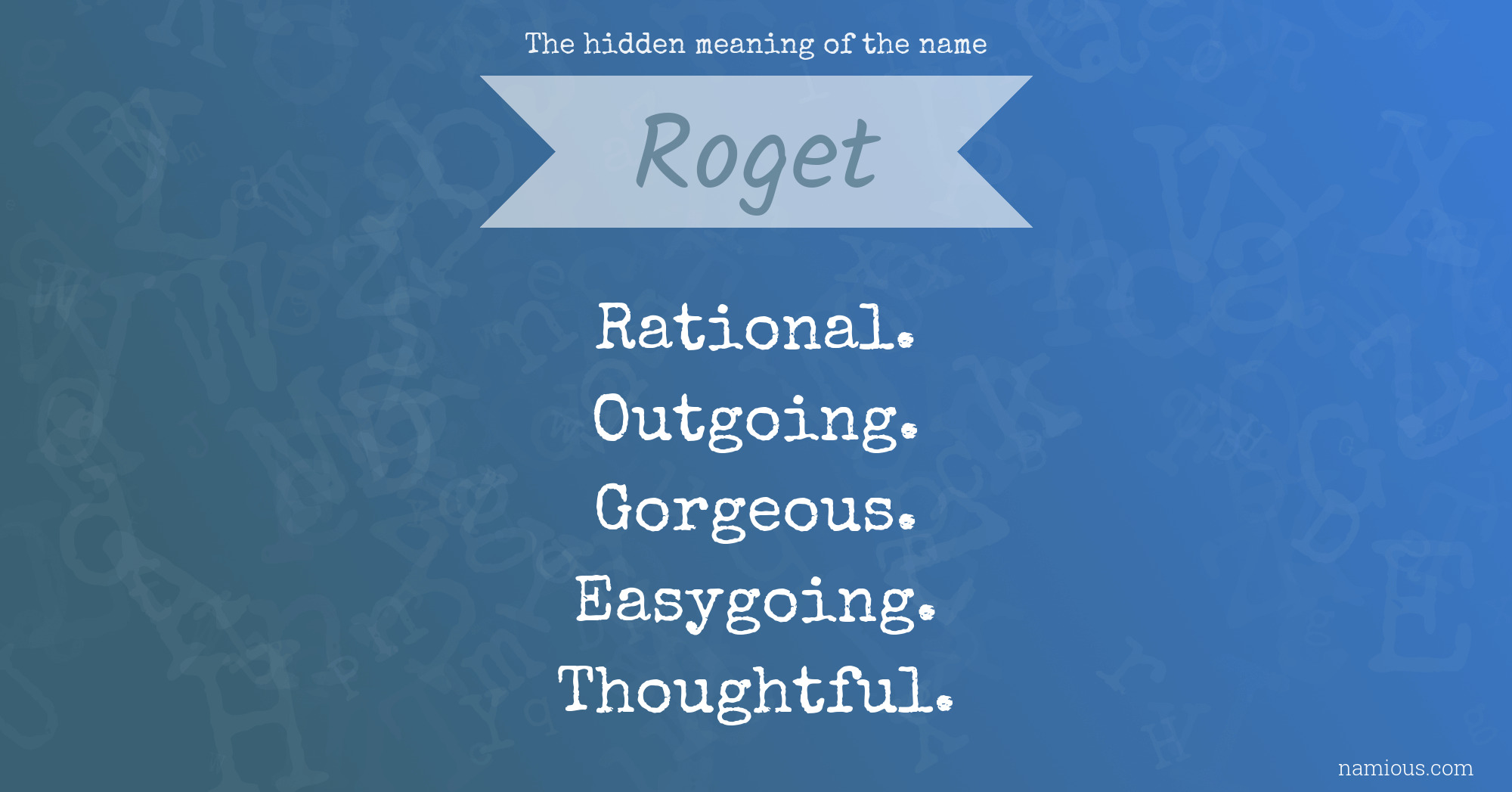"Roget is a rational, outgoing, gorgeous, easygoing and thoughtful person."