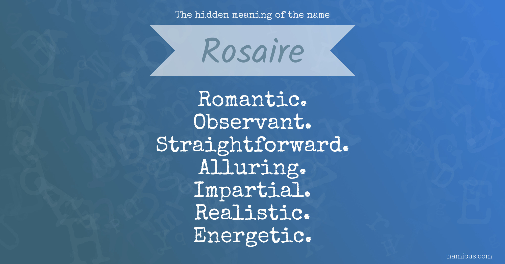 "Rosaire is a romantic, observant, straightforward, alluring, impartial, realistic and energetic person."