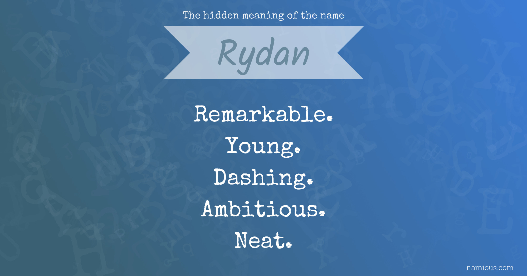 "Rydan is a remarkable, young, dashing, ambitious and neat person."