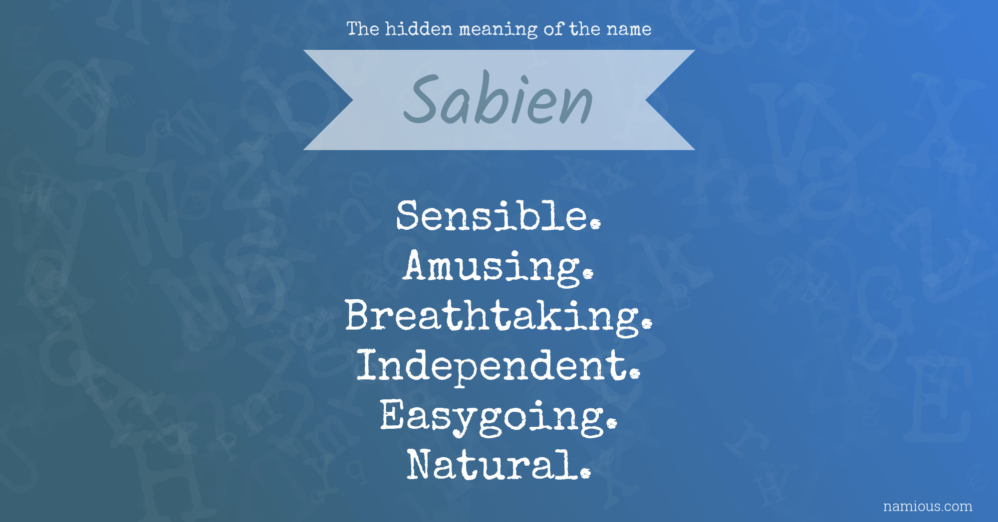 "Sabien is a sensible, amusing, breathtaking, independent, easygoing and natural person."