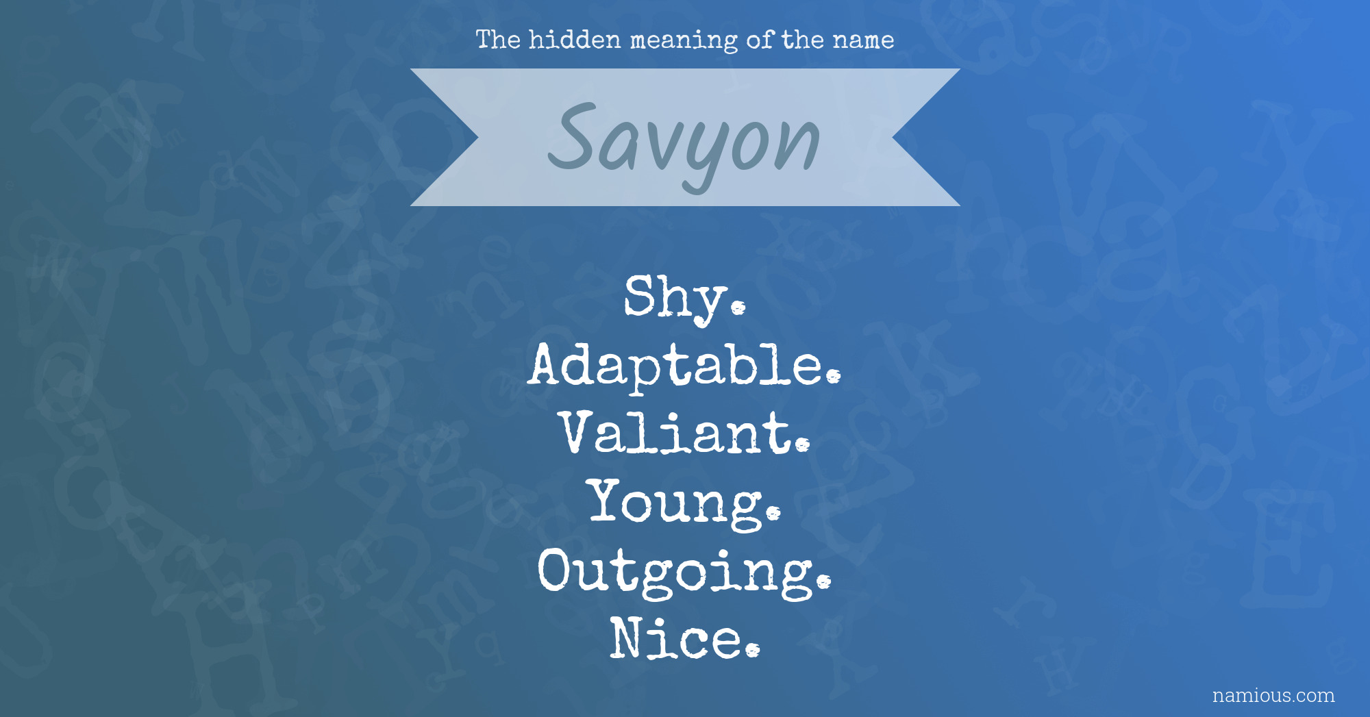 "Savyon is a shy, adaptable, valiant, young, outgoing and nice person."