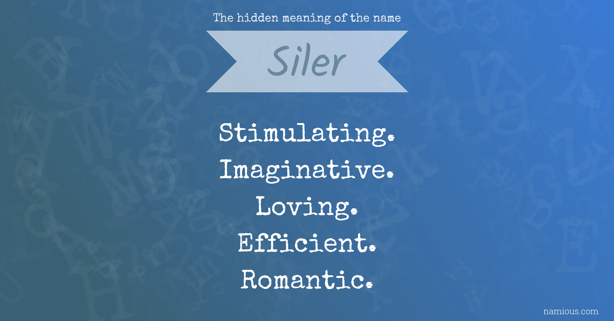 "Siler is a stimulating, imaginative, loving, efficient and romantic person."
