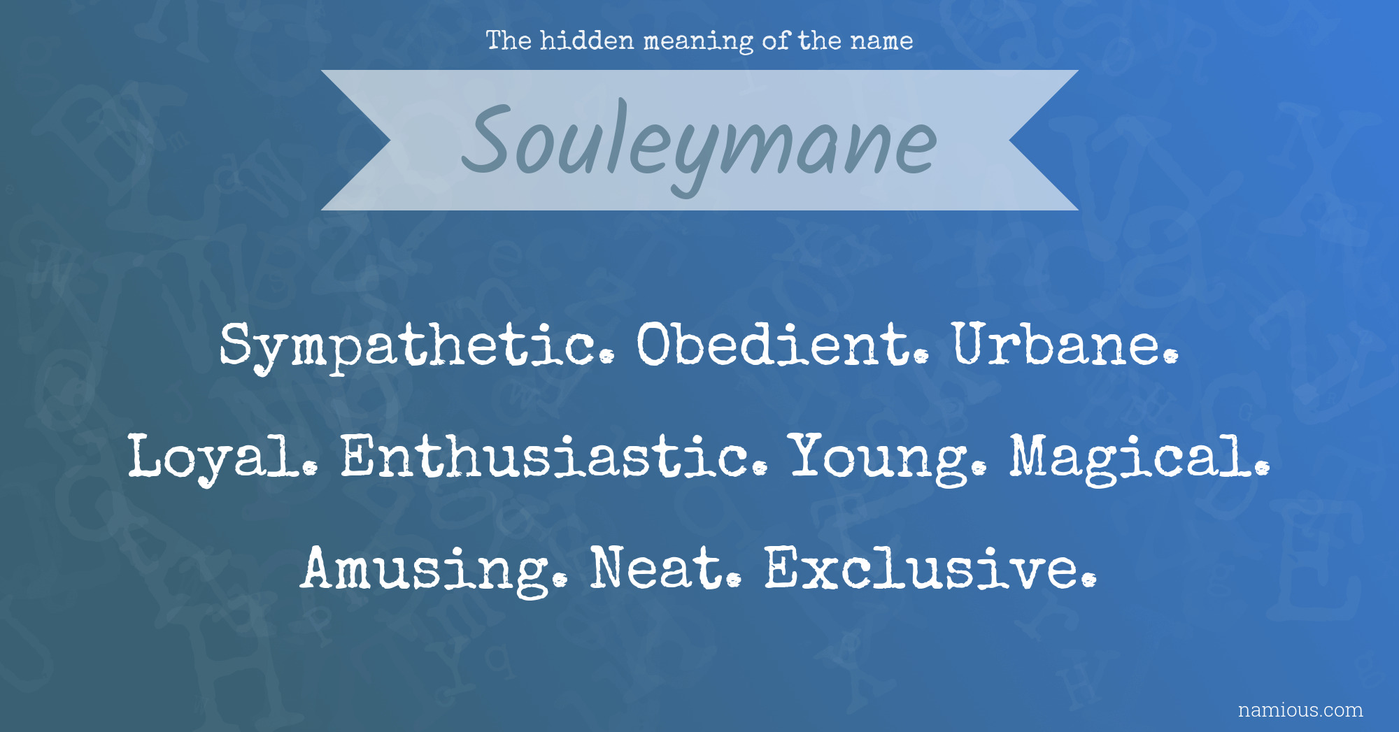 "Souleymane is a sympathetic, obedient, urbane, loyal, enthusiastic, young, magical, amusing, neat and exclusive person."