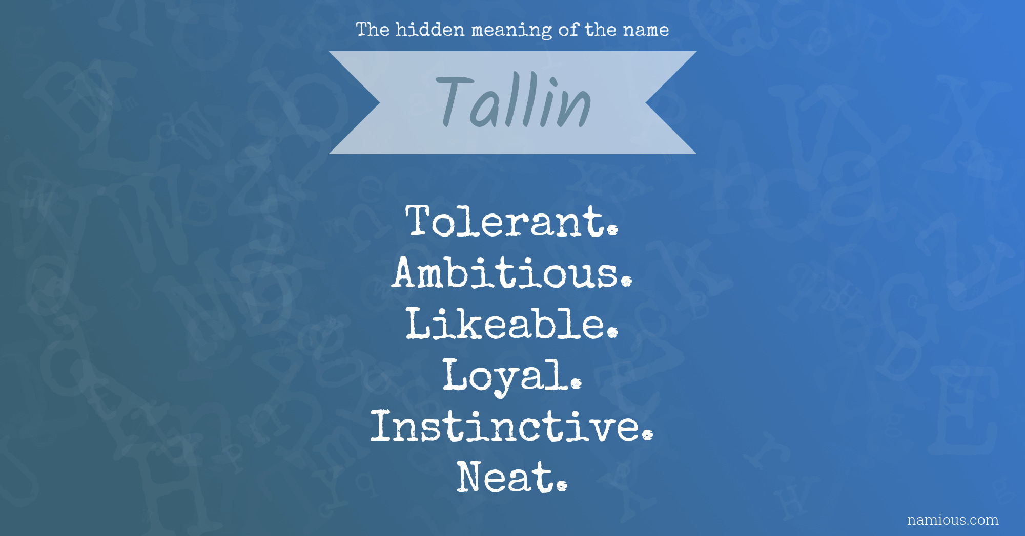 "Tallin is a tolerant, ambitious, likeable, loyal, instinctive and neat person."