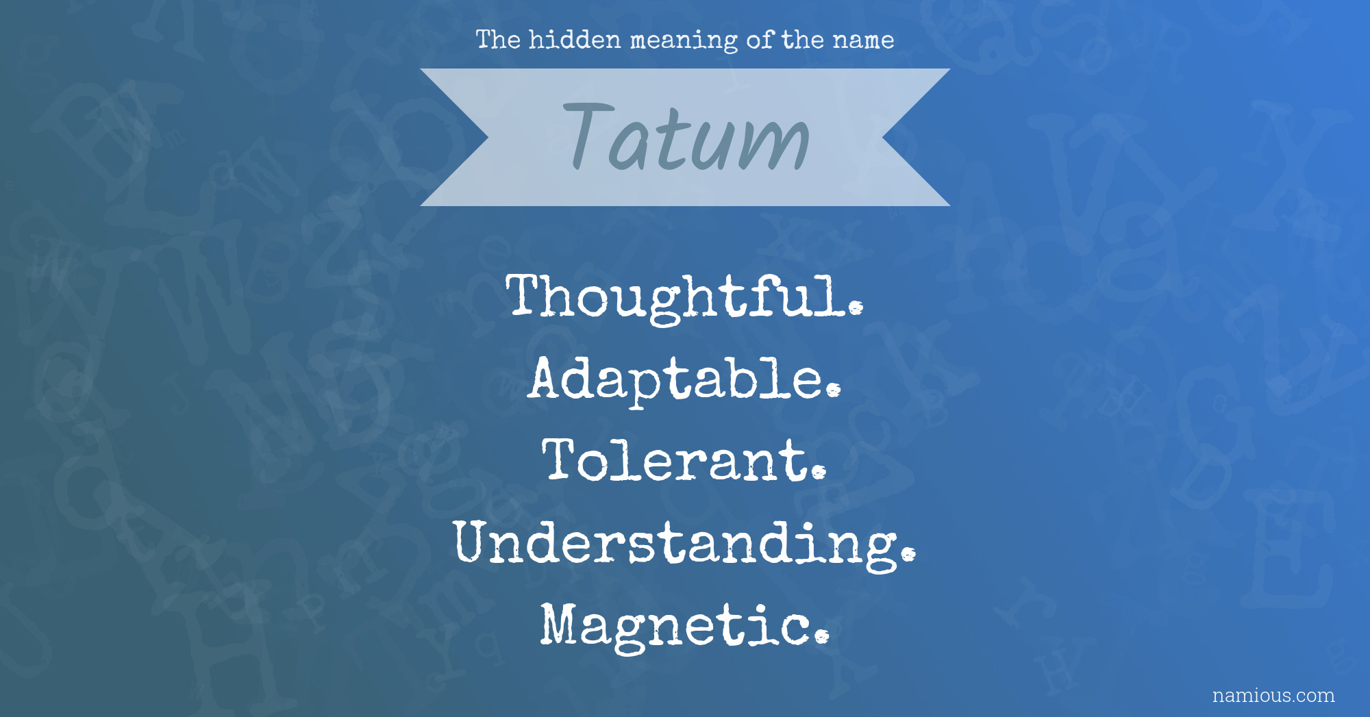 "Tatum is a thoughtful, adaptable, tolerant, understanding and magnetic person."