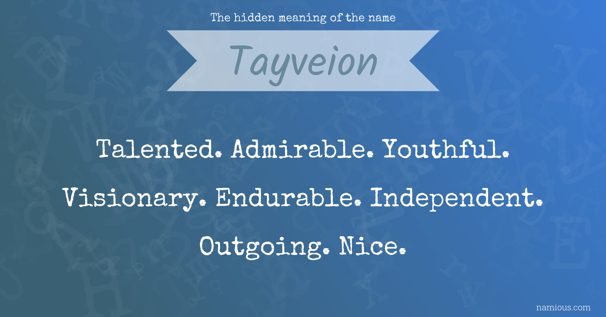 "Tayveion is a talented, admirable, youthful, visionary, endurable, independent, outgoing and nice person."