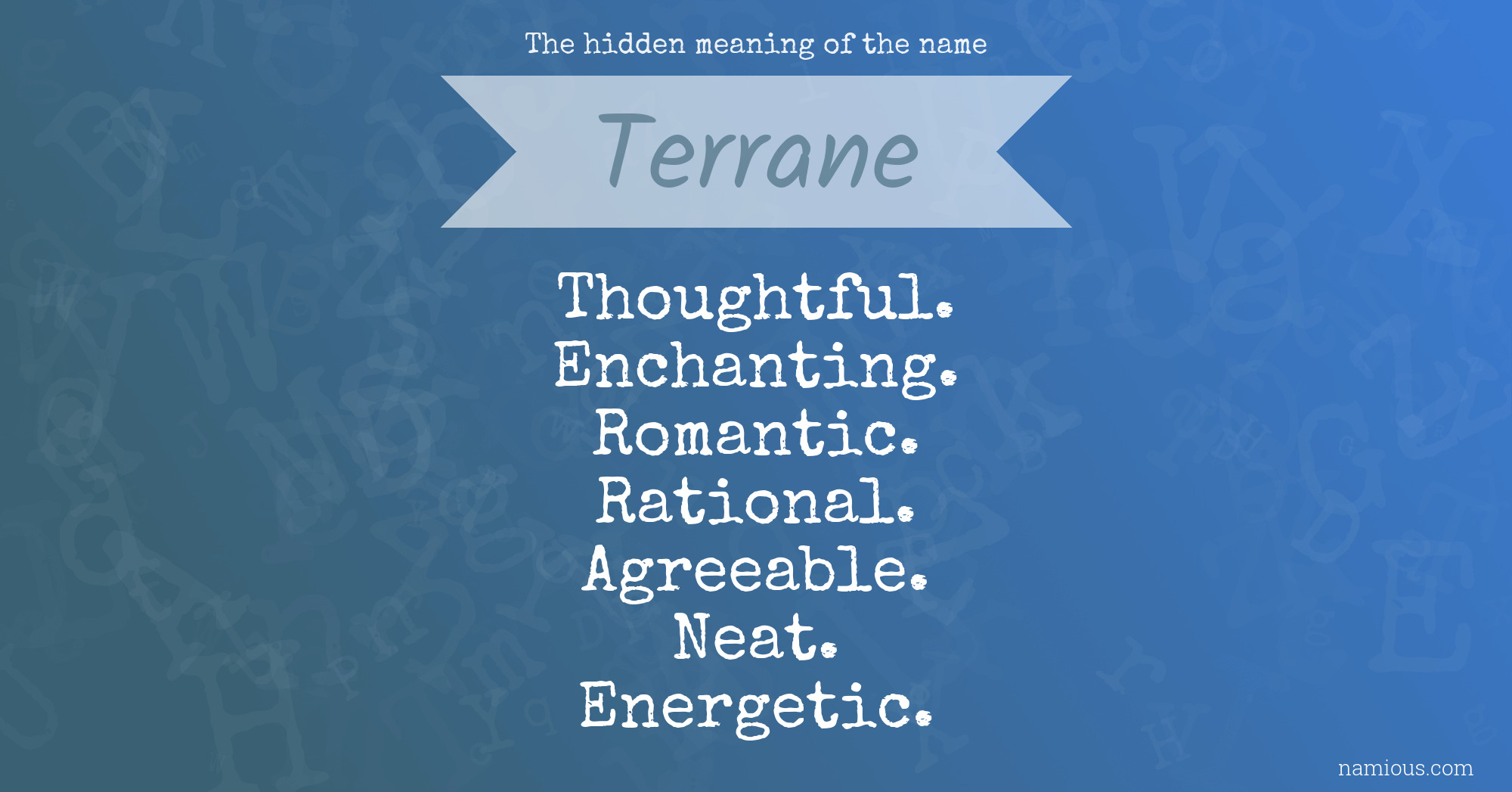 "Terrane is a thoughtful, enchanting, romantic, rational, agreeable, neat and energetic person."