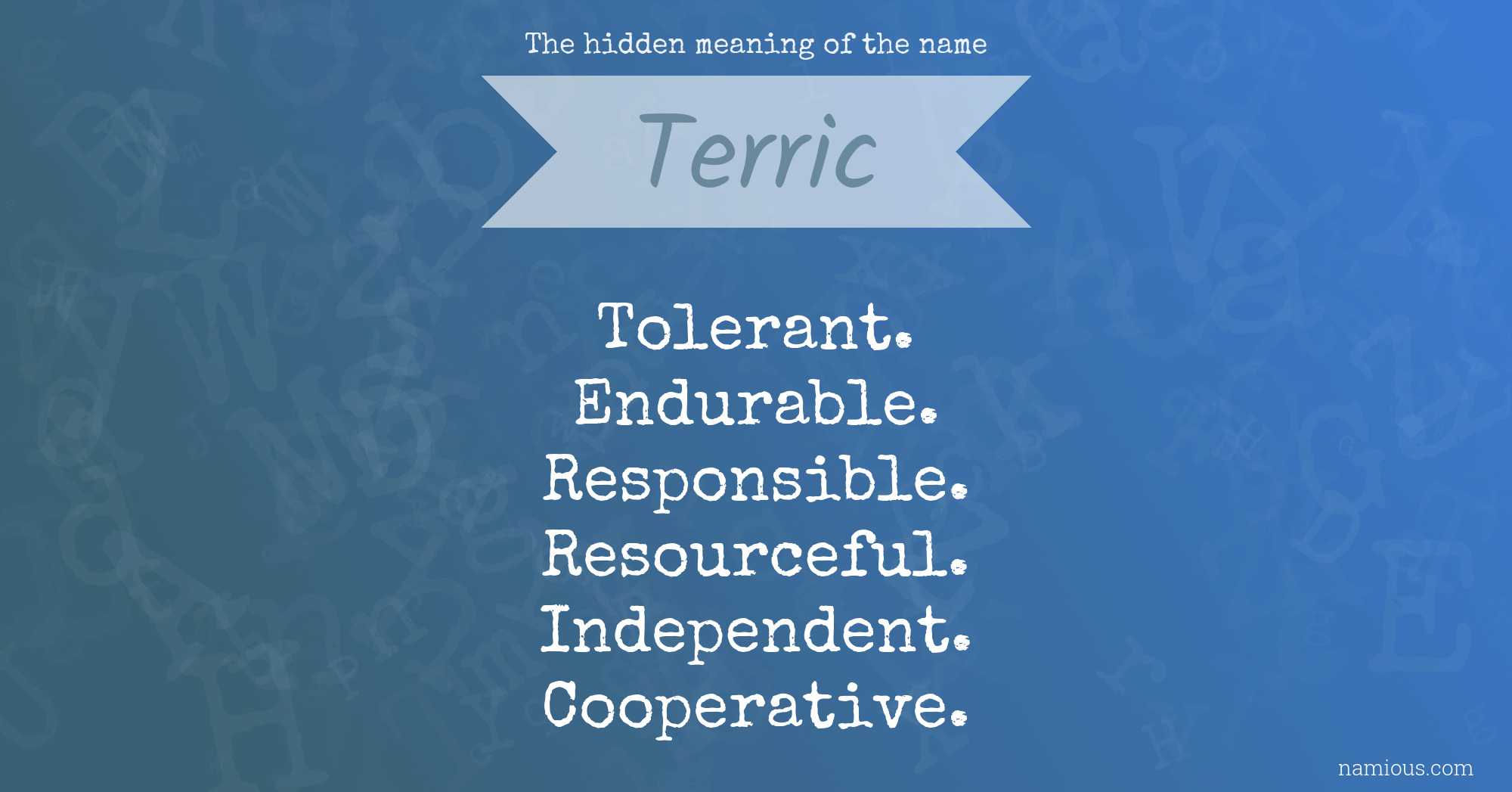 "Terric is a tolerant, endurable, responsible, resourceful, independent and cooperative person."