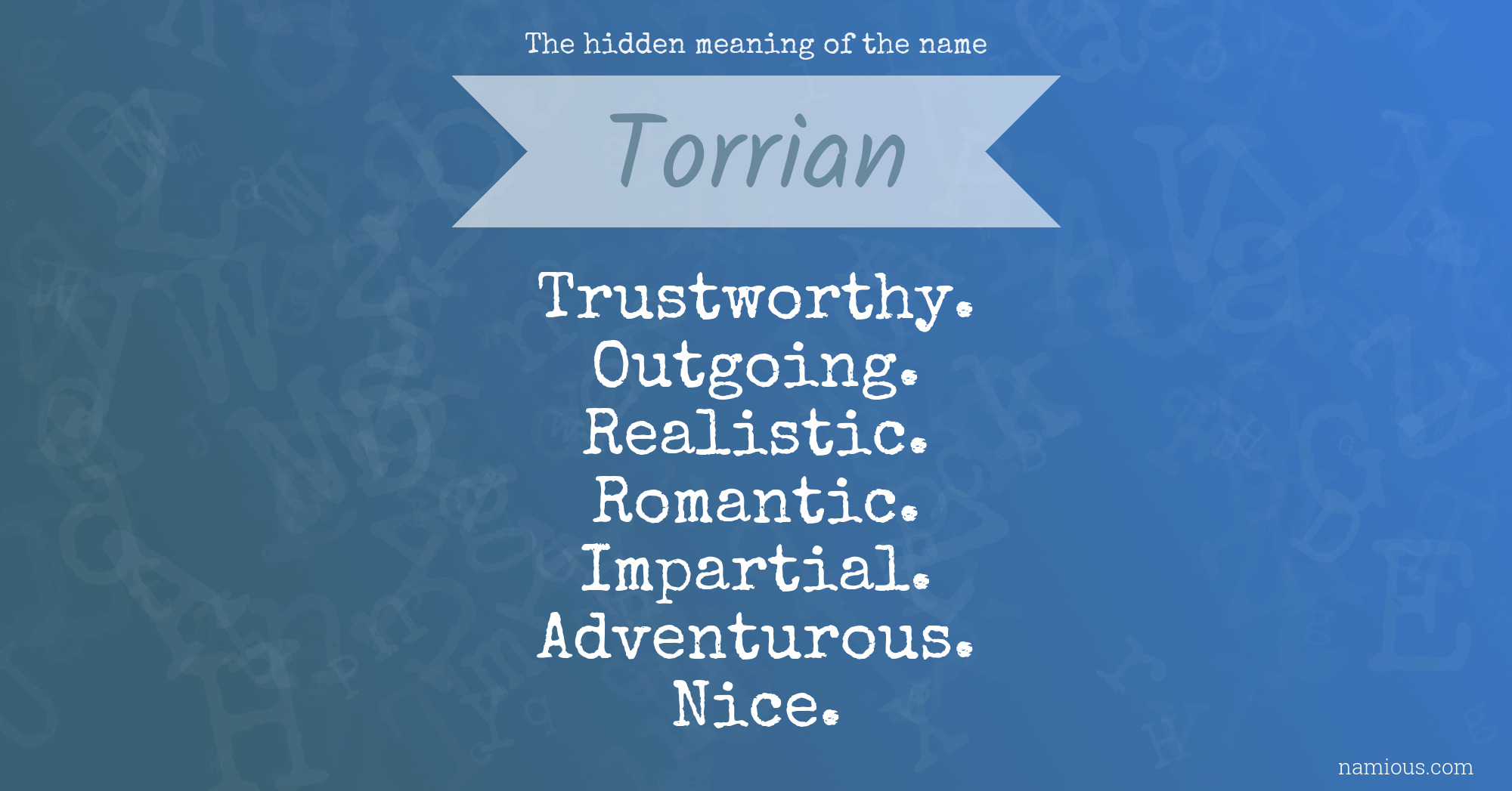 "Torrian is a trustworthy, outgoing, realistic, romantic, impartial, adventurous and nice person."