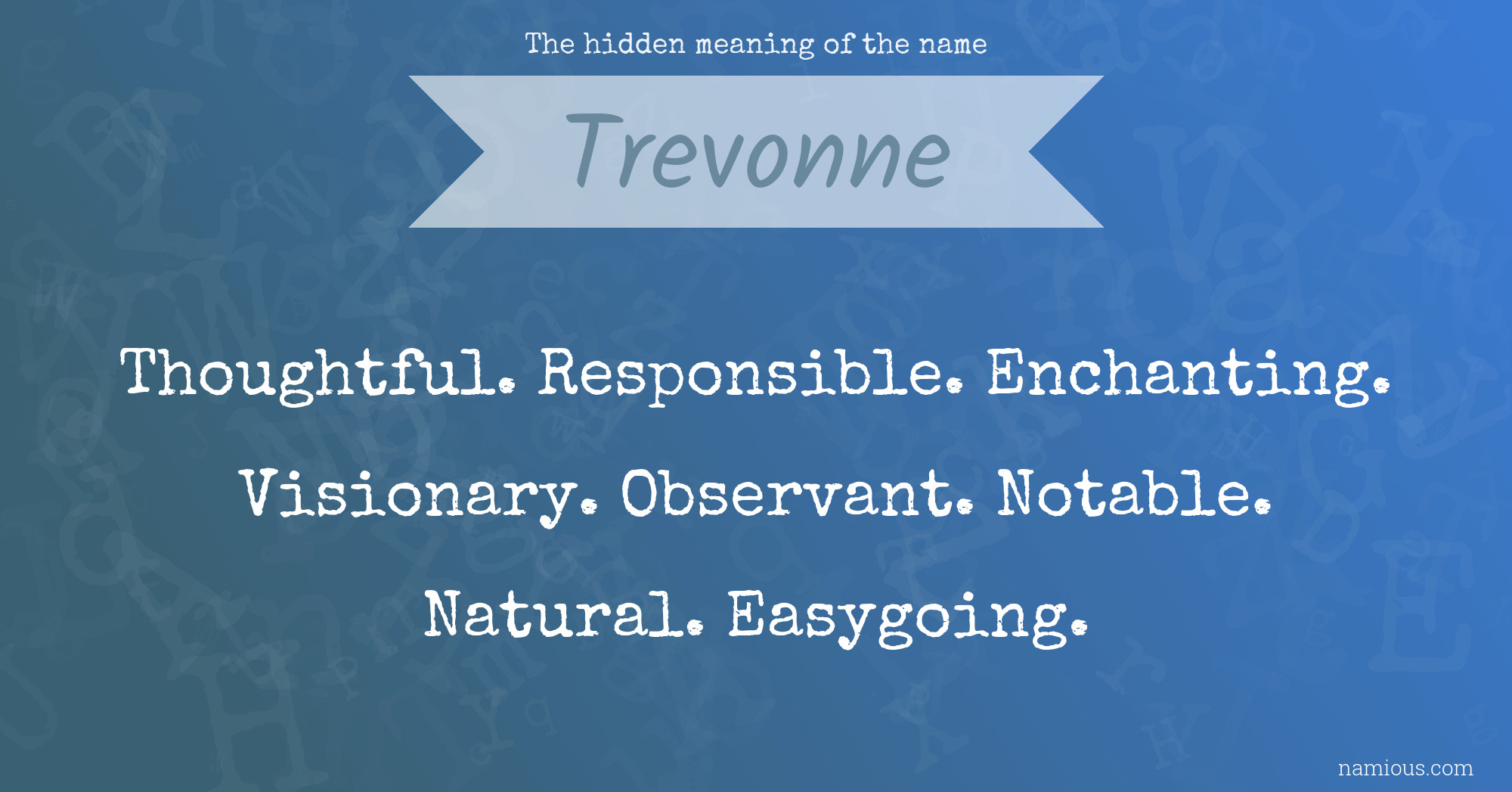 "Trevonne is a thoughtful, responsible, enchanting, visionary, observant, notable, natural and easygoing person."