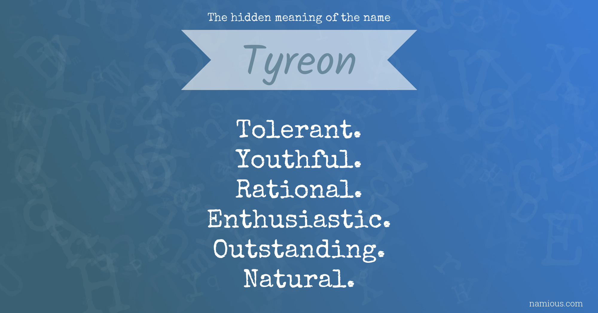 "Tyreon is a tolerant, youthful, rational, enthusiastic, outstanding and natural person."