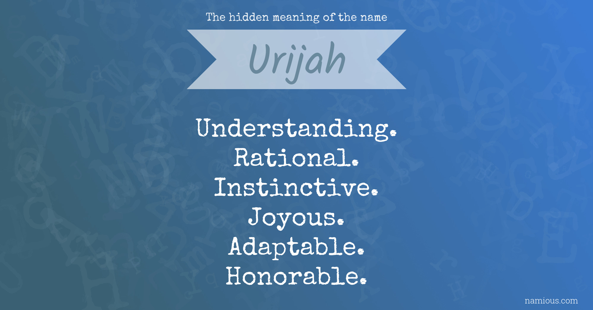 "Urijah is an understanding, rational, instinctive, joyous, adaptable and honorable person."