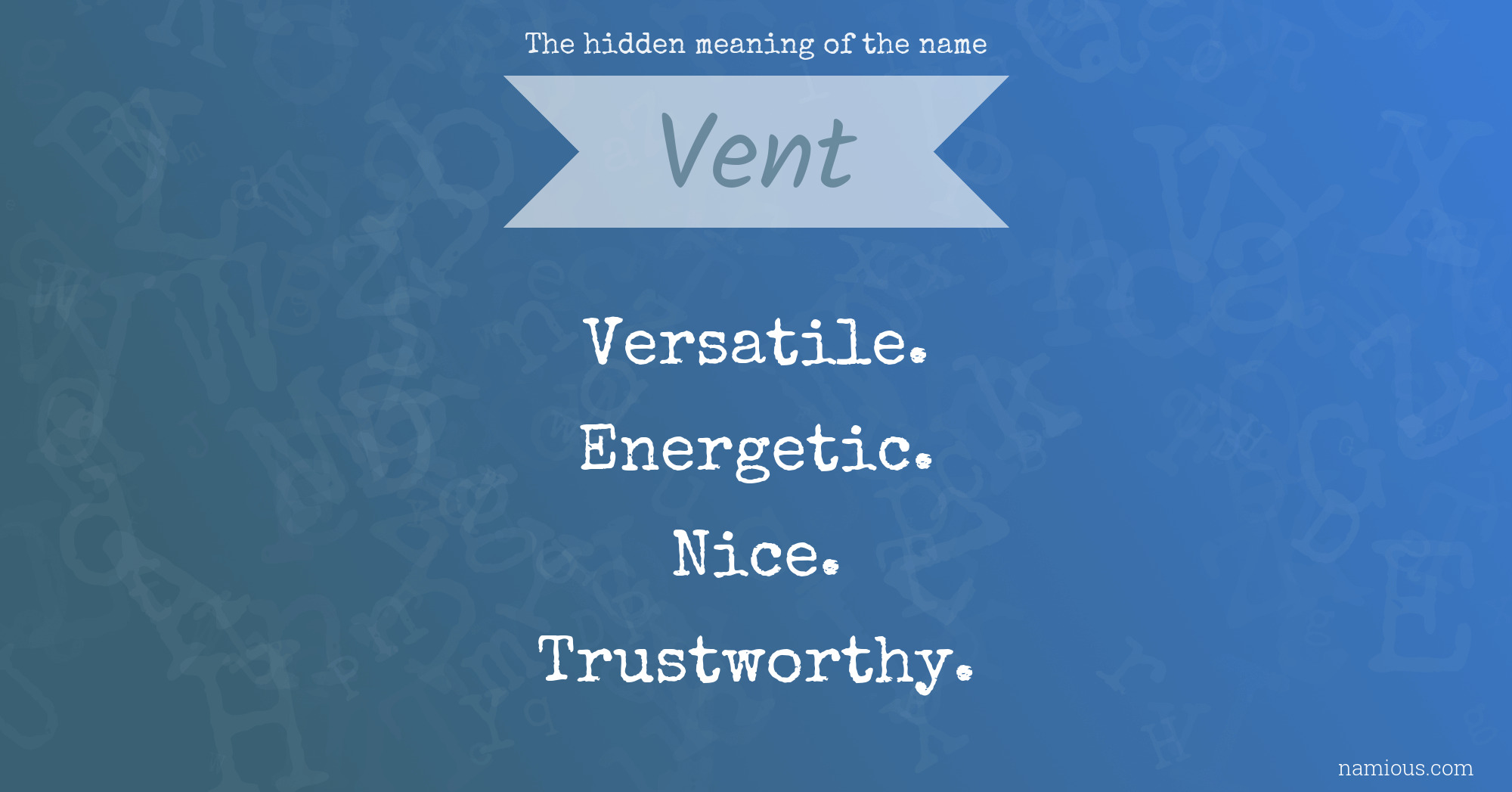 "Vent is a versatile, energetic, nice and trustworthy person."
