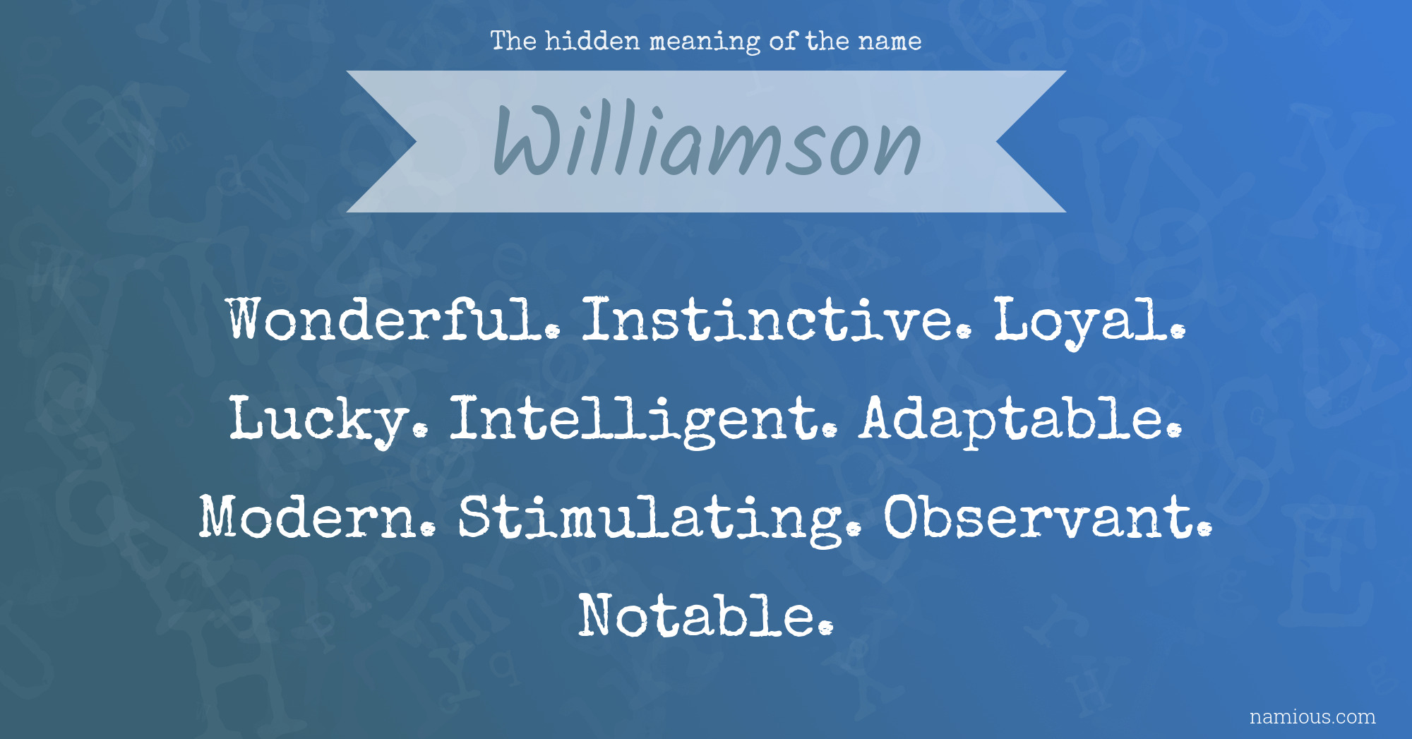 "Williamson is a wonderful, instinctive, loyal, lucky, intelligent, adaptable, modern, stimulating, observant and notable person."
