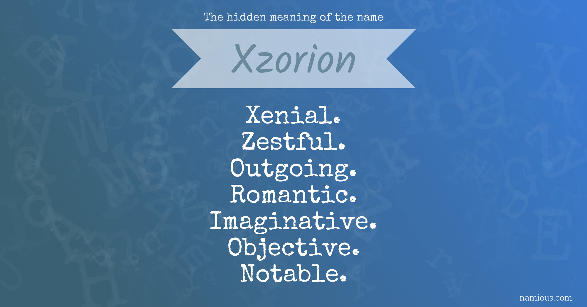 "Xzorion is a xenial, zestful, outgoing, romantic, imaginative, objective and notable person."