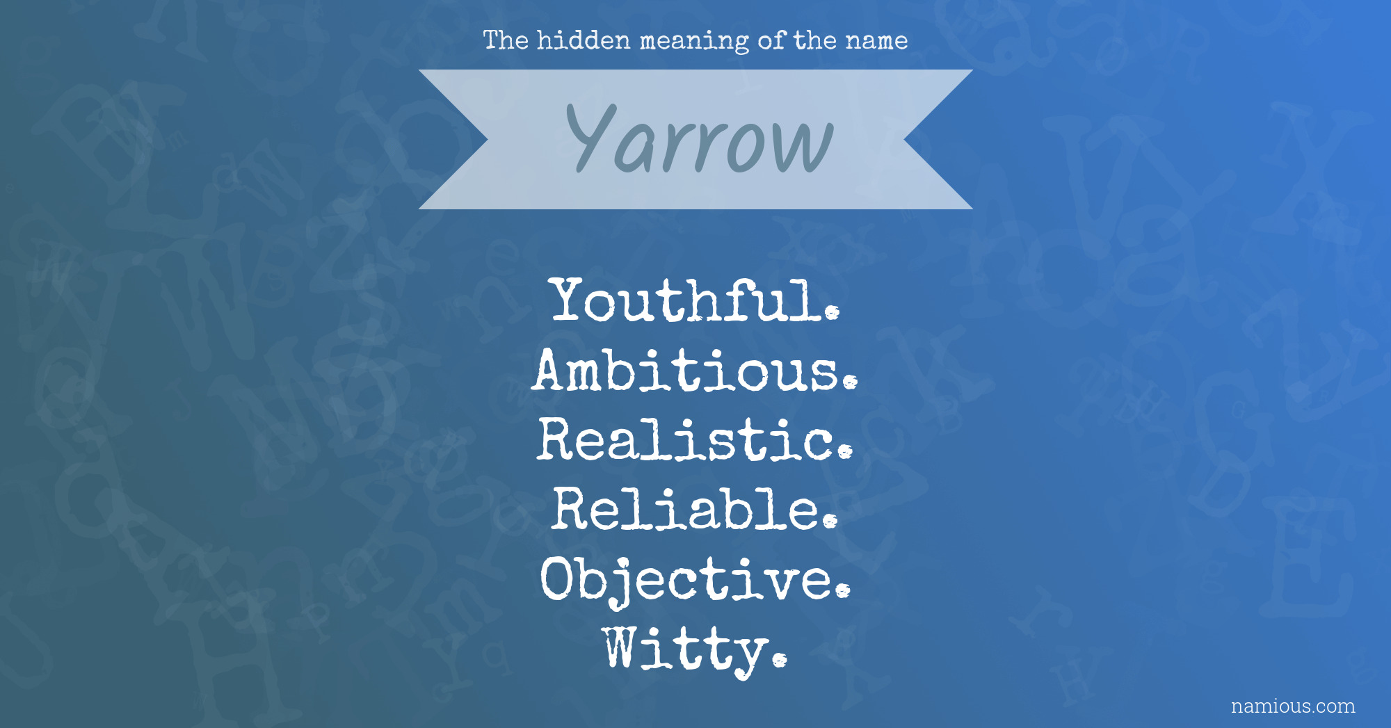 "Yarrow is a youthful, ambitious, realistic, reliable, objective and witty person."